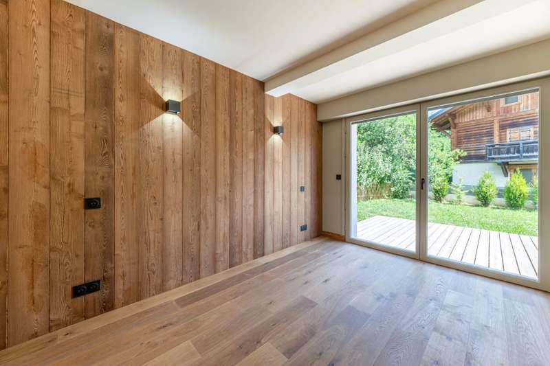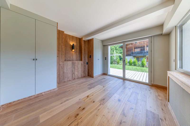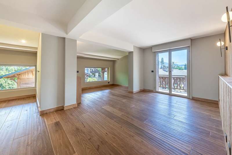 Magnificent triplex apartment (semi-chalet), fully renovated and ideally located in the sought-after Jaillet area, just a short walk from the village center. This exceptional property is spread over three levels: On the ground floor, you will find an entrance hall, two spacious en-suite bedrooms with built-in storage, both offering direct access to the terrace and garden. This level also includes a ski room and a laundry area. On the main floor: a bright and spacious living area with a fireplace, a fully equipped kitchen, and a large L-shaped balcony—perfect for enjoying the view. On the top floor: two beautiful en-suite bedrooms, both with balconies, including a master suite with a walk-in dressing room. Parking spaces in front of the semi-chalet can accommodate up to four vehicles. For further information or to arrange a private viewing, please do not hesitate to contact us.