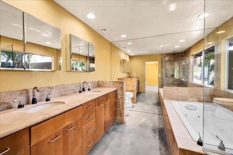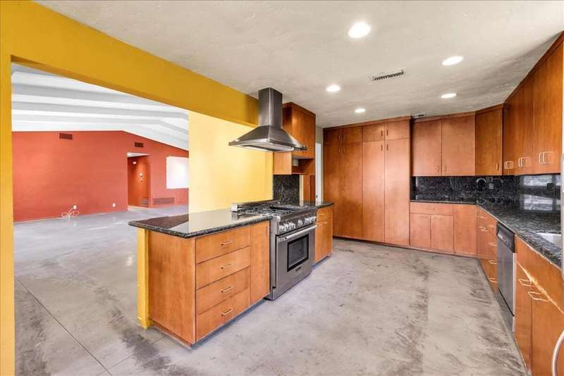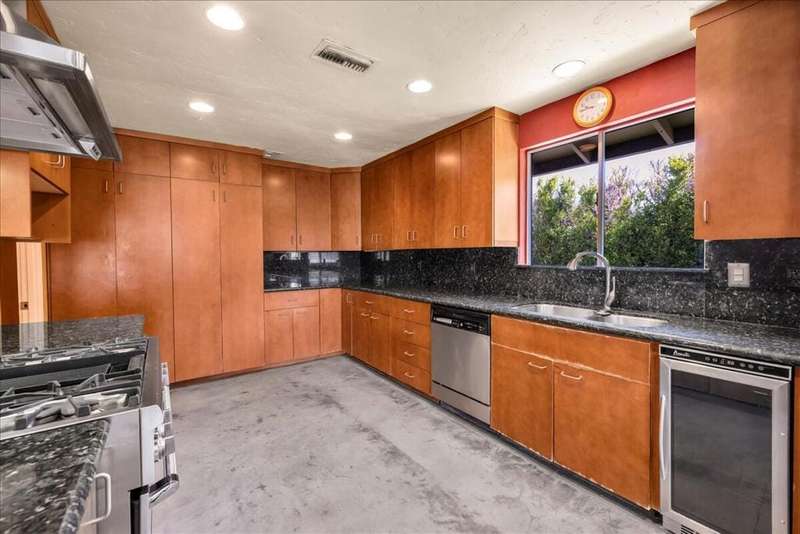 This large family home offers 3 bedrooms, 2 baths in 2282 square feet on an oversized 13,000+ square foot lot. Huge great room with fireplace and cathedral beamed ceilings, an eat-in kitchen with dining area and large family room that offers plenty of space to grow. The cook's kitchen offers granite counter-tops, stainless appliances, a four burner gas range/oven, with a TON of cabinetry. Inside laundry with direct access to a double car garage with additional storage. This gated property includes a courtyard entry to the home giving great privacy to the interior spaces. High-end upgrades include a standing seam metal roof, double pane doors and windows and custom window treatments throughout. The primary bedroom offers two closets (one walk-in) and a luxurious bath with soaking tub, walk-in shower and double vanities. A large south-facing window floods the primary bathroom with natural light. The oversized yard offers a pool and spa, grassy area and two storage buildings. Mountain views and mature landscaping complete the picture. FEE SIMPLE land. A coat of paint to this cosmetic fixer will result in a stunning home.