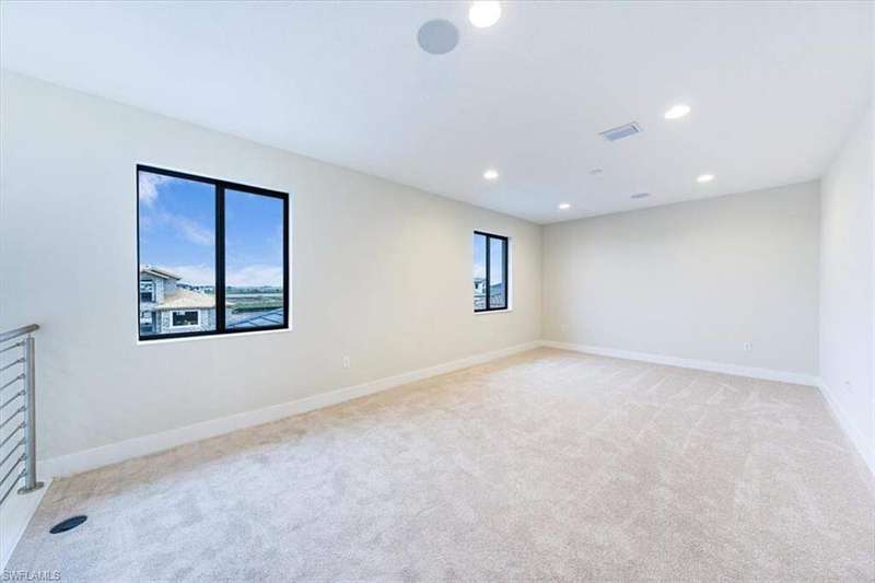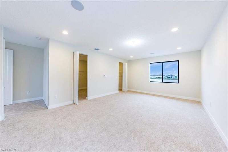 Stunning New Construction in Maple Ridge! Magnificent home built in 2023. Largest estate home in sought-after Maple Ridge community, situated on premium lot offering water views. A 2-story masterpiece boasting 4 bedrooms, 3.5 bathrooms, loft, spacious 3-car garage, and an abundance of storage. Impeccable craftsmanship w/$284,000 worth of upgrades carefully selected by owners. A separate entrance to office/guest bedroom Casita w/full bath. Relax in style w/heated, saltwater pool/spa. Extended tiled lanai is fully screened, providing a bug-free outdoor oasis. Plus,plumbing/electric wiring ready to install a dream outdoor kitchen!Impact glass windows and doors, 3-car garage, and Chef's package w/custom cabinets/appliances. Kitchen features Quartz countertops,stunning backsplash. Owner's suite master a true retreat w/2 walk-in closets, double door entry, oversized bathroom w/walk-in shower, and 2 water closets. Entertainment ready w/upgraded electrical options, including SONOS surround sound system/upgraded Wi-Fi networking. Located in Ave Maria-Naples, w/beautiful clubhouse, walking trails/bike paths, excellent schools, town shopping, dining, recreation activities, and events.
