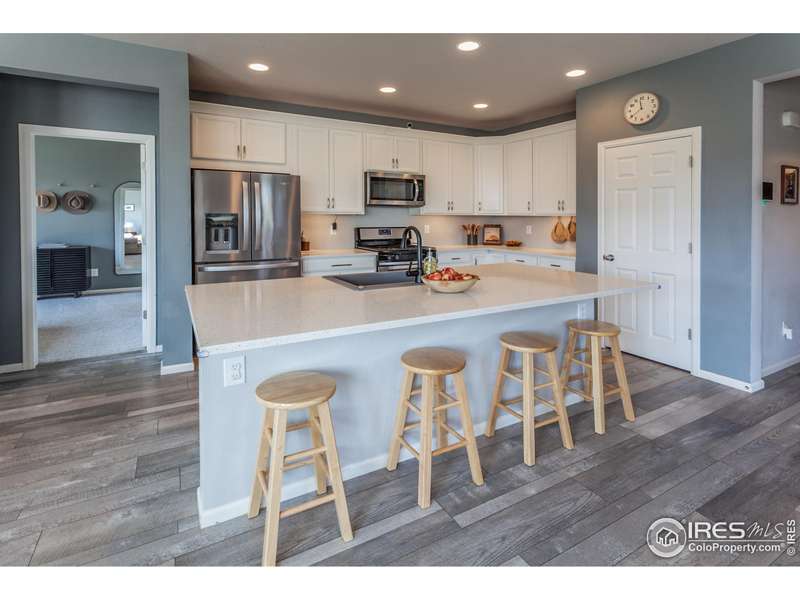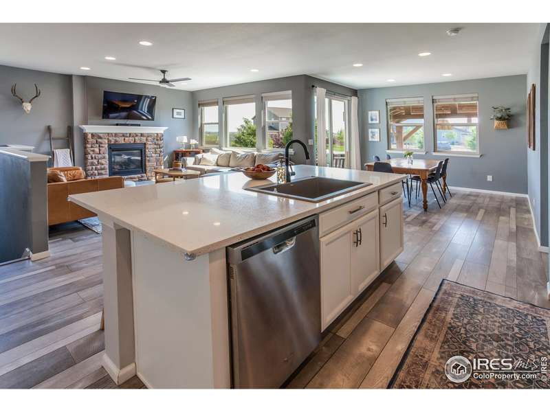 This beautifully maintained ranch-style home, situated on a spacious corner lot, offers the perfect blend of comfort, style, and convenience. With easy access in and out of the neighborhood and just minutes from community amenities; including two pools, multiple parks, pickleball, tennis, and basketball courts, a splash pad, dog park, and walking trails it's an ideal location. Inside, you'll find bright, sun-filled living spaces with updated carpet, custom lighting, and a charming stone fireplace that anchors the open living area. The kitchen features sleek quartz countertops, a updated farmhouse sink, LVP flooring and flows seamlessly to the main living space, which enjoys peaceful morning light and afternoon shade. The spacious primary suite includes a 5-piece bath and a large walk-in closet, while the finished basement offers a versatile rec room, an additional bedroom, and a full bathroom. perfect for guests, a home gym, or movie nights. Enjoy outdoor living with a fully fenced backyard, custom landscaping, and a large patio ideal for entertaining or relaxing. A 3-car garage completes this move-in ready home that truly has it all