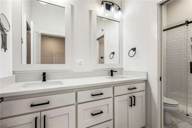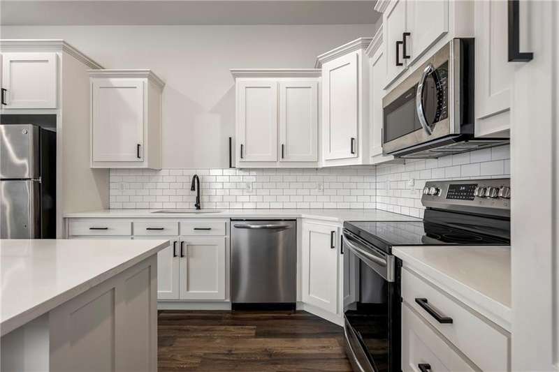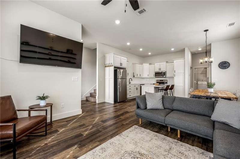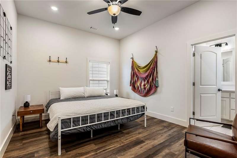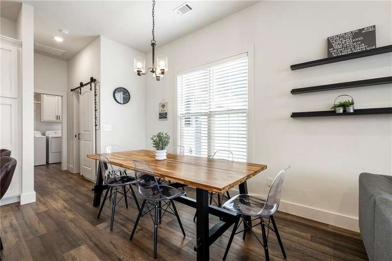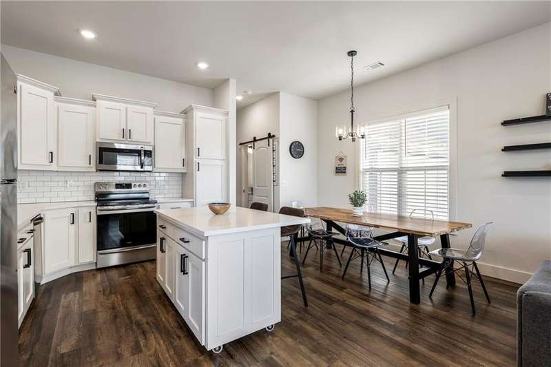 This stunning home in downtown Rogers offers an unbeatable location near entertainment, schools, fine dining, and scenic trails. Inside, you'll find a spacious living room filled with natural light and an open floor plan. The modern kitchen features sleek modern cabinets, quartz countertops, stainless steel appliances, a large island, pantry, and eat-in area. The primary suite on the main level boasts LVP flooring, a luxurious ensuite with double sinks, a walk-in tile shower, and a large walk-in closet. Upstairs, three spacious bedrooms with LVP flooring and walk-in closets surround a cozy landing area. A detached garage provides ample storage, while the patio is perfect for entertaining! Great investment opportunity, with its desirable location, modern features making it an attractive option for both personal enjoyment and financial gain.
