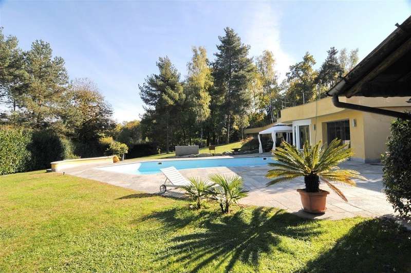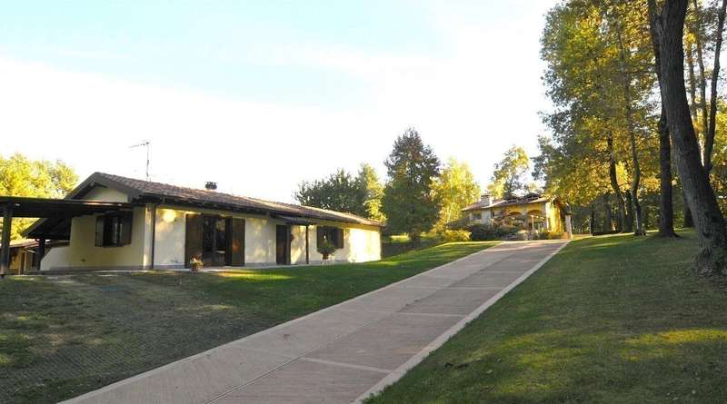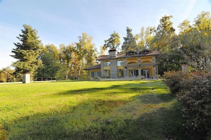 Elegant property for sale located in Agrate Conturbia in the Piedmont countryside, consisting of the main villa with swimming pool and guest or staff annex, close to the Ticino Valley Nature Reserve and the Novara hills. This beautiful villa with annex, is located in an elegant and quiet residential area, close to Lake Maggiore and Milan Malpensa Airport. The property consists of an estate of 35,000 square meters of fully fenced parkland. Everything enjoys absolute privacy, the luxury residence consists of the main villa, and another adjacent villa for guests. In addition to this property, there is on the property, the staff house. The main villa measures over 1,000 square meters. It features a grand indoor heated swimming pool with a built-in hot tub. It is composed on the ground floor by the service rooms and large garage of 250 sqm. Also on the same floor is the large tavern with fireplace and open kitchen, the gymnasium and five bedrooms each with private bathroom. The wellness area is dedicated to the sauna, Turkish bath, Scottish shower. On the second floor large kitchen with veranda, dining room, living room with fireplace, library and service bathroom. On the second floor master bedroom with walk-in closet and en suite bathroom, laundry rooms. For the staff there is a detached house of more than 100 square meters, equipped with living room with fireplace, kitchen, two bedrooms and services. The entire real estate is in perfect condition. The same also for the park partly lawn and partly forest. The whole property is not far from the 27-hole Castelconturbia Golf Course. Only 30 minutes away is the international airport of Milan Malpensa. This feature makes it attractive this property for sale, to international clientele.