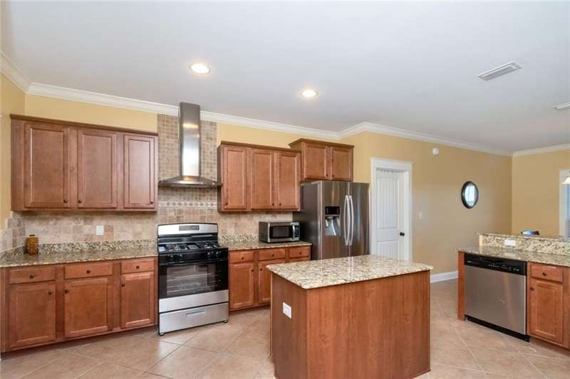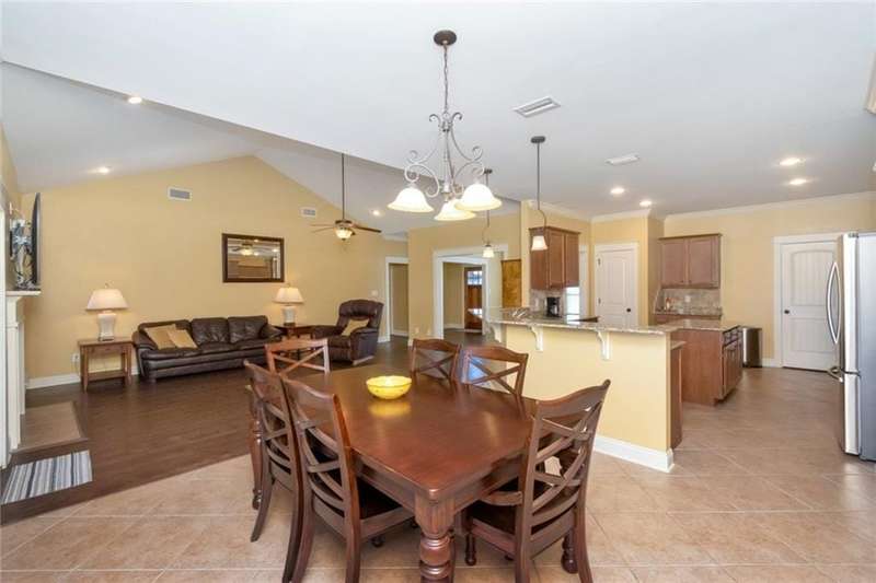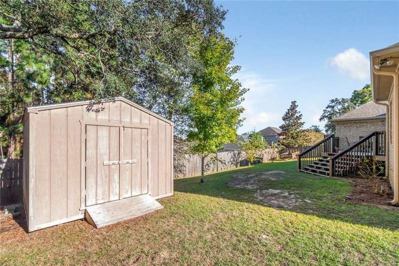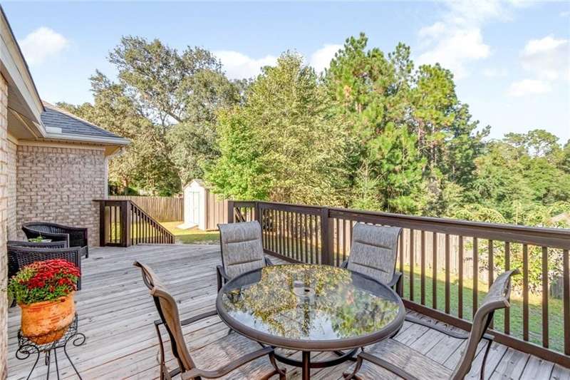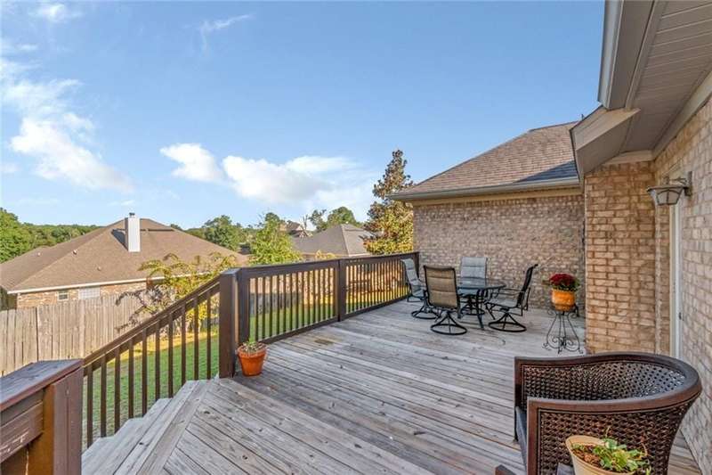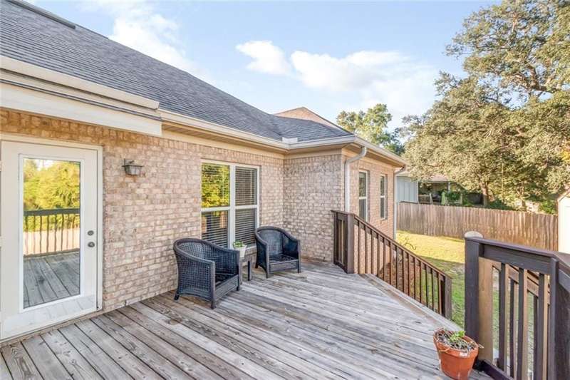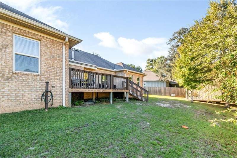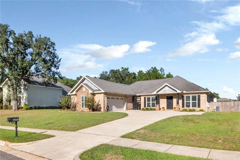 Immaculate and well-maintained four-bedroom, 2-bath home in Legacy at Saybrook subdivision off Sollie Road in West Mobile. The welcoming foyer opens to a living room with a vaulted ceiling, gas-log fireplace, and beautiful hardwood floors. A formal dining room sits to the left, while the kitchenwith its own breakfast areaflows seamlessly into the living space. The kitchen is a cooks dream featuring granite countertops, a central island, breakfast bar, stainless appliances, and rich stained cabinetry. The spacious primary suite includes a luxurious bath with a walk-in shower, soaking tub, dual vanities on either side, separate commode, and large walk-in closet. The split bedroom plan offers privacy with additional bedrooms and a full bath on the opposite side. Outside, enjoy a Sprinkler System, large deck overlooking the neighborhood and a double garage that adds convenience and storage. This home is move-in ready and shows pride of ownership throughout. This home is in an estate. They answered what they know. Updates that are known Stove=2025 Motor in Pump=2025. ***Listing Broker makes no representation to accuracy of square footage. Buyer to verify. Any/All updates per seller(s).***