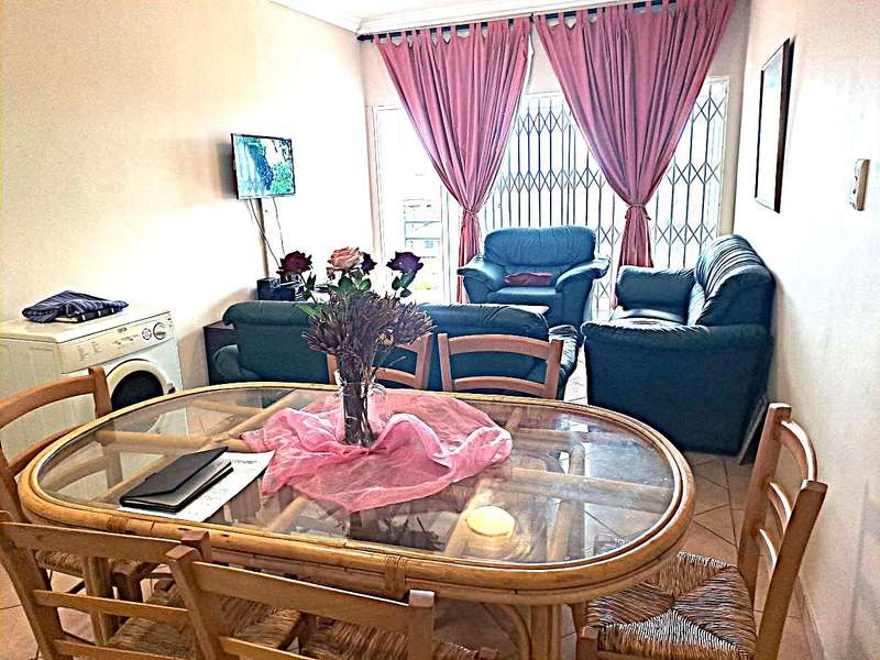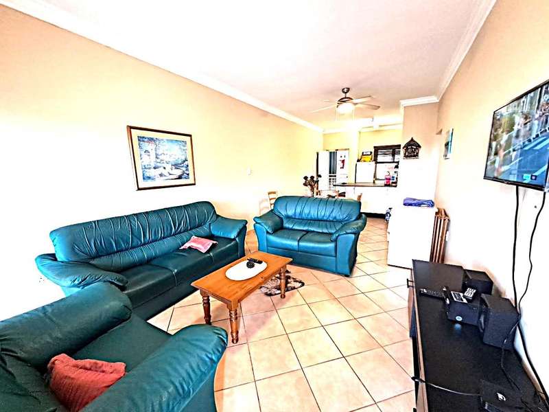 This lovely fully furnished ground floor unit is within walking distance to the beach with stunning sea views. The unit comprise of a open plan kitchen with plenty of cupboards plus a build in stove and extractor fan. Sliding doors out to the patio from the open plan lounge and dinning room, there is 2 bedroom with build in cupbaords and a main on suit and a quest bathroom. Sliding doors from the main bedroom opens up to the patio area and garden. There is a lock up garage and braai area at the back with great sea views, outside the kitchen is a little storeroom.