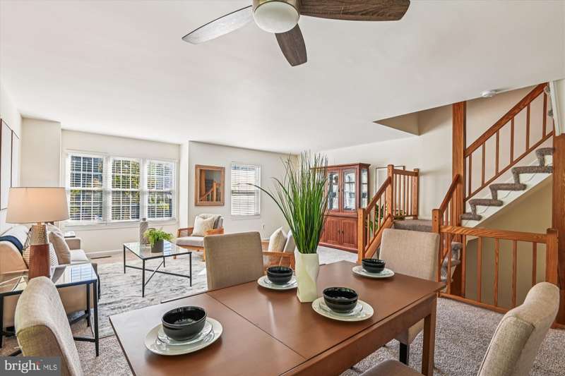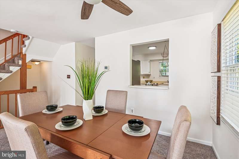 Spacious, light-filled END-UNIT TOWNHOME with attached garagefreshly painted and truly move-in ready! The excellent layout makes everyday living easy. Step into a LARGE, WELCOMING FOYER with plenty of storage. The entry level features a generous 4th BEDROOM, OFFICE, OR EXERCISE RM with sliding door access to the backyard, plus a convenient laundry rm. The STUNNING MAIN LEVEL offers an eat-in kitchen with SS appliances and a pass-through to the dining rm, a half bath, and a HUGE, SUNLIT LIVING/DINING AREAperfect for entertaining. From the kitchen, access the EXPANSIVE DECK BACKING TO WOODS, an ideal setting to grill, dine al fresco, and watch the sunset. Upstairs, youll find 3 BEDROOMS AND 2 FULL BATHS, including a PRIMARY SUITE WITH EN SUITE LOFT. This bonus space feels like your own private retreatskylights and a ceiling fan make it the perfect spot for a stylish home ofc, library, or yoga sanctuary. Set on a QUIET COURT, this home delivers privacy without sacrificing convenience. With quick access to I-95, RT 32, and RT 29, commuting is a breeze.