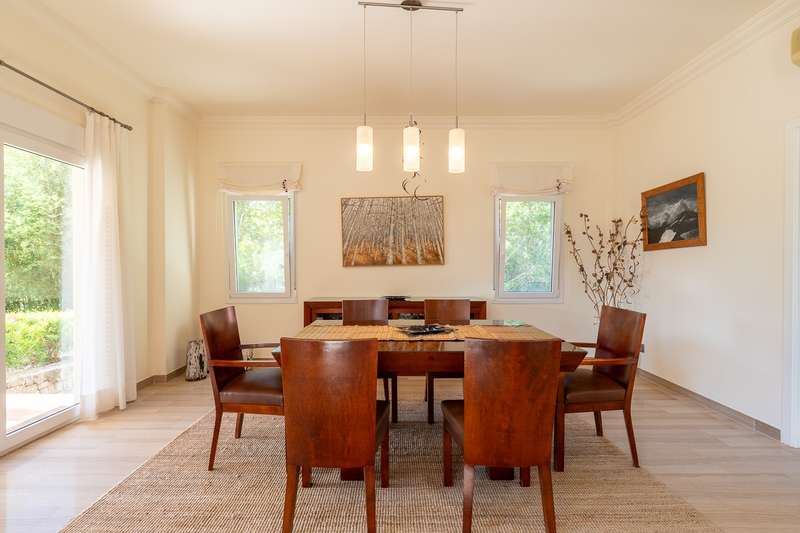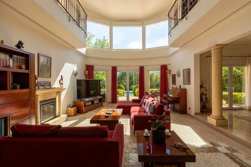 This impressive villa is located in the prestigious area of Tarraula, in Jávea, Alicante. With an architectural design that combines elegance and functionality, the property offers a luxurious and comfortable living environment. The villa, built on a spacious plot of approximately 10,500m², features a constructed area of over 600m², providing generous space for personal and family enjoyment. The villa boasts five bedrooms and four bathrooms, two of which are en-suite, ensuring privacy and comfort for all residents. The interior of the property is adorned with marble and parquet floors and is equipped with air conditioning and underfloor heating throughout the house, ensuring a pleasant atmosphere year-round. The kitchen is fully equipped and includes a laundry area. Outside, the villa offers a private oasis with a swimming pool and a garden, both with panoramic views of the mountains and countryside. The terraces, both covered and uncovered, are ideal for enjoying the tranquility of the surroundings, while the barbecue area invites outdoor gatherings. The villa is also equipped with an automatic irrigation system for the garden, ensuring its maintenance with minimal effort. Additional features include a private garage with space for two vehicles and a basement designed as a games room, ideal for leisure activities. The property is well-connected, located near amenities, the sea, beaches, golf courses, and the city center, offering a perfect balance between privacy and accessibility. This villa in Tarraula is a unique opportunity for those seeking a dream home in a natural setting without compromising modern conveniences, very close to the Jávea Golf Club and the city center.