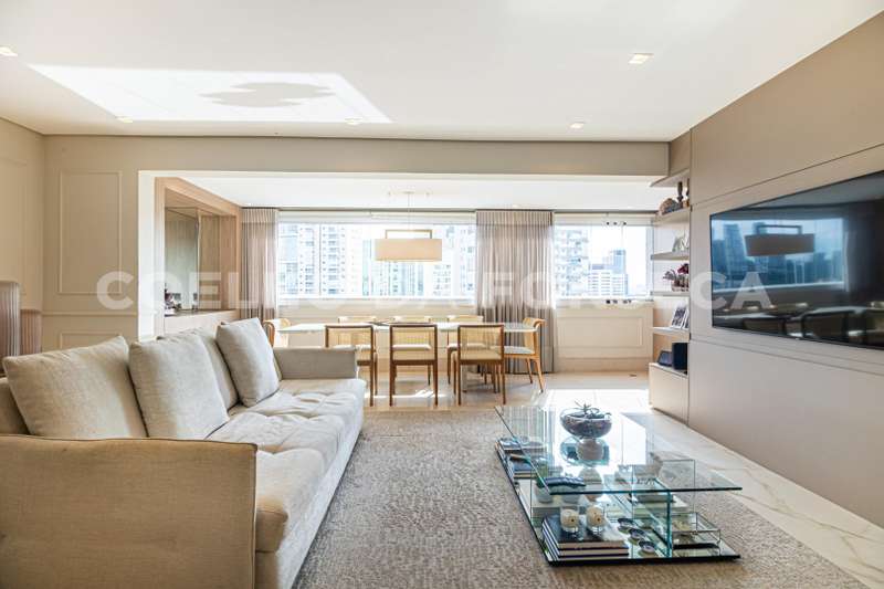 Apartamento no bairro Brooklin Paulista com 119m² área privativa/útil, 2 dormitório(s), 2 suíte(s), 2 vaga(s), 3 banheiro(s), churrasqueira, ar condicionado, reformado (a), varanda gourmet.