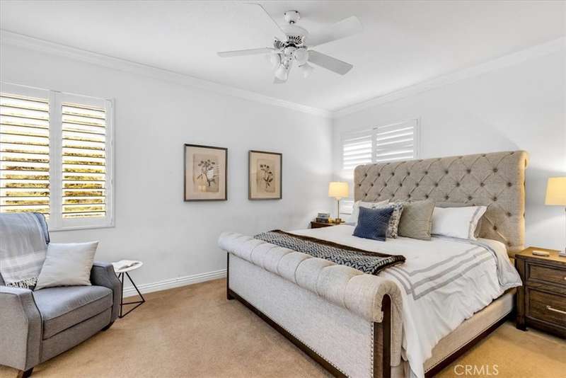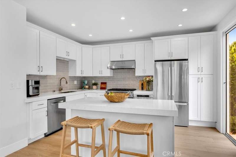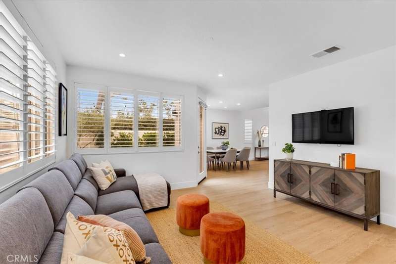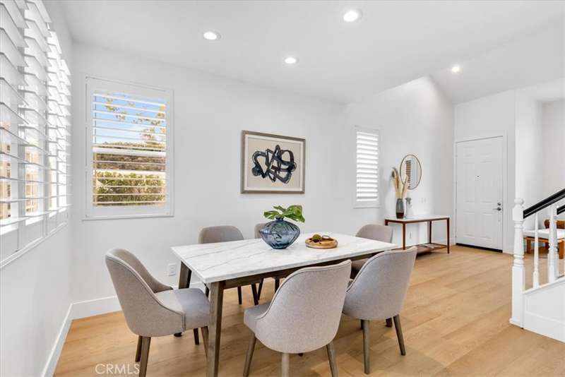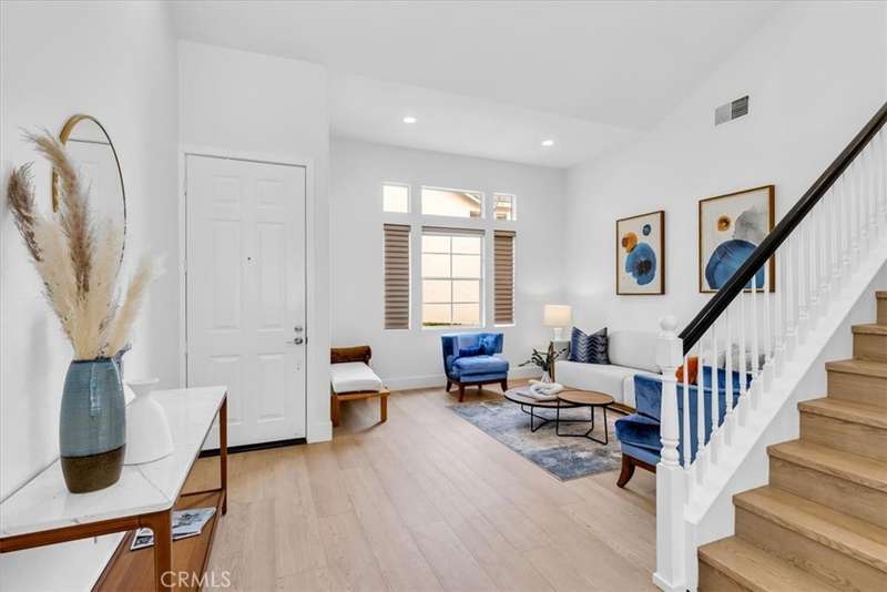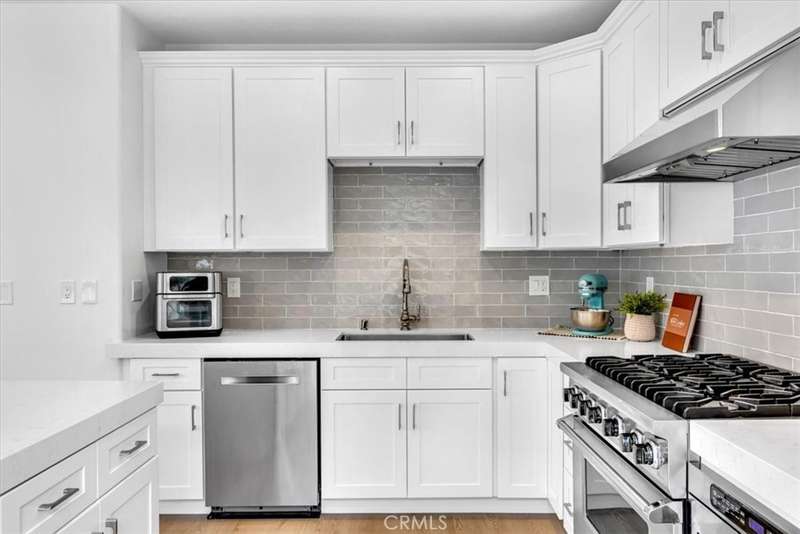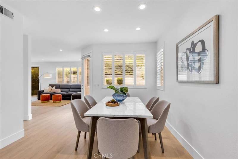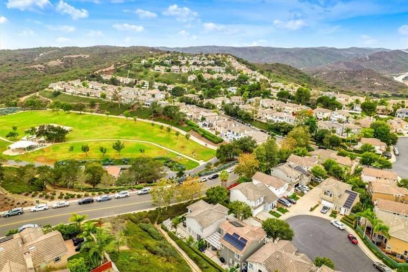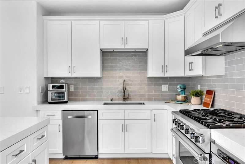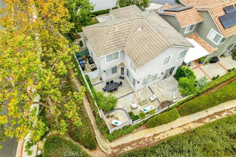 Welcome to this stunning 4-bedroom, 2.5-bathroom home in the desirable Harvest community of Aliso Viejo, where homes rarely come on the market. Perfectly situated on a corner lot at the end of a quiet cul-de-sac, this nearly 1,900 sq. ft. residence blends comfort, style, and functionality in every detail. From the moment you enter, you're greeted by soaring ceilings, abundant windows, and natural light, creating an inviting and airy atmosphere. Plantation shutters add timeless elegance while maintaining privacy. The open-concept main level is designed for modern living, featuring brand-new laminate flooring throughout and a remodeled kitchen with recessed lighting, quartz countertops, shaker cabinetry, a Viking 6-burner gas range, and Bosch stainless steel refrigerator and microwave--ideal for both everyday meals and entertaining guests. The peaceful backyard, accessible directly from the kitchen, feels like a true extension of the living space. Complete with a built-in grill and plenty of room for gatherings, it's the perfect spot for summer barbecues, weekend entertaining, or simply relaxing outdoors. Upstairs, you'll find all four bedrooms along with a conveniently located laundry room. The secondary bathroom is generously sized, offering dual sinks, crown molding, tile floors, and a shower/tub combination. The primary suite is a luxurious retreat with a mirrored closet door, a large walk-in closet, and a spa-inspired bathroom showcasing dual sinks with granite counters, a soaking tub, a step-in glass shower, crown molding, and custom lighting. The Harvest community is known for its pride of ownership and peaceful setting. Enjoy being within walking distance to neighborhood parks, hiking, and biking trails, and just a short drive to shopping, dining, entertainment, and convenient freeway and toll road access. Families will especially appreciate the home's location within the award-winning Aliso Viejo school district. Don't miss this rare opportunity to own in Harvest--schedule your private showing today!