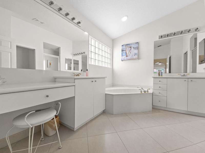 Enter through beautiful double glass etched doors to the popular Balmoral model. Meticulously maintained by the original owners this homeis light and bright with a split floor plan for easy living and entertaining.The eat in kitchen offers 42 '' wood cabinets, granite countertops and backsplash, stainless steel appliances and bar high counter. Spacious primary suite with bay window, 2 walk in California type outfitted closets, roman tub, double sinks and separate shower. Additional features include :Tile throughout, Crown molding, Volume ceiling, Expanded patio, Accordian shutters, Den/office with murphy bed, built in desk unit, Portable generator, Private dead end street.Cascade Lakes is a vibrant 55+ man gated community with tennis, pickleball on site pros, fitness center