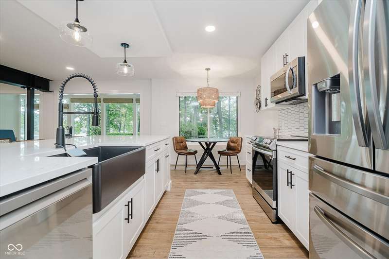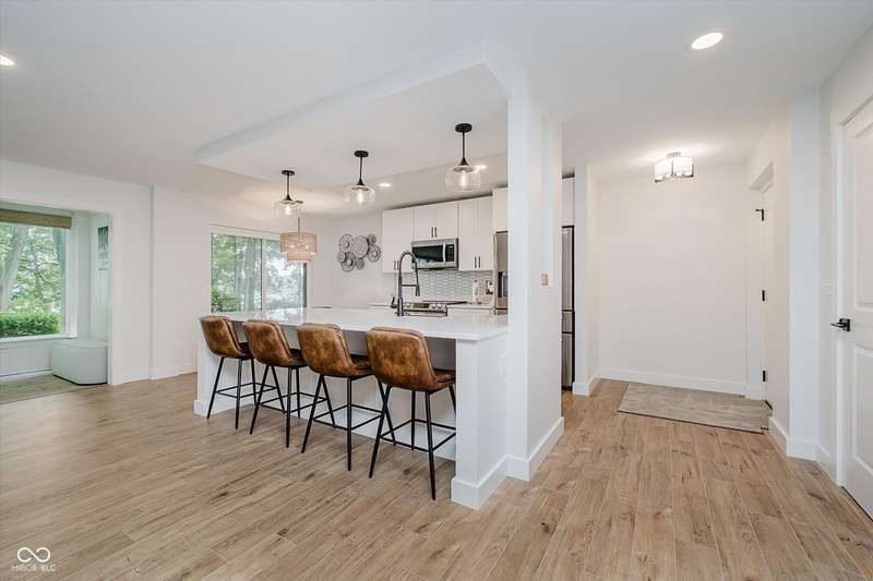 Immaculate and updated from top to bottom - no detail has been overlooked!!! This condo is THE PERFECT option for anyone wanting water views, water access, a community pool, and a move-in-ready condo on Morse Reservoir! Imagine preparing meals in a magazine-worthy kitchen with Cambria Quartz countertops, stainless steel appliances, a farmhouse-style sink, seating for 4 at the kitchen island, gorgeous overhead lighting, and plenty of storage in the nearby pantry. The kitchen opens up into the adjacent great room with a stunning exposed I-beam, shiplap fireplace with gas log insert, and large windows for plenty of natural light. The tranquil sunroom boasts oversized windows, designer carpet and a storage closet for all your 'extra' items, PLUS custom motorized blinds! Don't miss the updated laundry room with the included washer and dryer! The primary en-suite is a peaceful and relaxing space and the attached bathroom has been remodeled top to bottom! Brand new shower, tile, dual sink vanity, flooring, and lighting - nothing has been overlooked! The walk-in closet is the icing on the cake with thoughtful storage shelves and a masterful use of the space. The second bedroom is clean and bright with an additional walk-in closet. You won't find another waterfront condo that is this updated! There is a deeded boat dock with lift, covered garage parking, and a community pool, clubhouse and community garden.