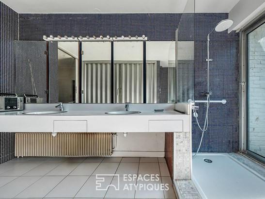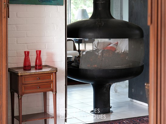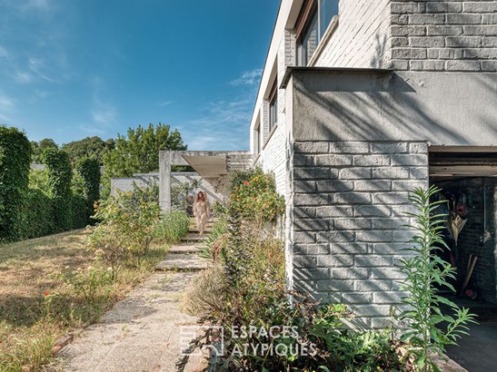 It is in Orleans Est, in a quiet residential area, that nestles this atypical architect-designed house, designed in the 70s in a pure Californian spirit of the sixties. With its 231m2 of living space, this generously sized house unfolds onto a wooded garden of more than 1200m2, rare in the heart of the city. From the driveway, the lines of the house and the play of perspectives immediately catch the eye. Once through the door, the brightness and the singular architecture of the place give it a unique atmosphere. The double living room, with a surface area of 56 sqm, is organized around a suspended fireplace and a winter garden and its sculptural cacti, highlighted by large Japanese-style openings. Throughout the space, accordion doors and dividing walls, typical of the 60s style, punctuate the volumes and allow for modulating the atmospheres, between fluid openings and a more intimate cocoon. In its extension, the entrance distributes a vast open and convivial kitchen, designed for shared meals. A spacious master suite and its bathroom complete this first level and offer all the comfort of a single-story life. All around, the landscaped garden surrounds the house with greenery and extends the living spaces to the outside. The upper floor has a mezzanine office, open to the kitchen, a library area or games room, as well as two bedrooms and a bathroom. As for the basement, it includes a first heated area, easily converted into a fourth bedroom, and extends into the boiler room space, the cellar, the laundry room, as well as a garage. This rare property, between emblematic architecture, generous volumes and enveloping garden, is waiting to write a new page in its history and to find those who will be able to reinterpret it with accuracy, sensitivity and inspiration.
