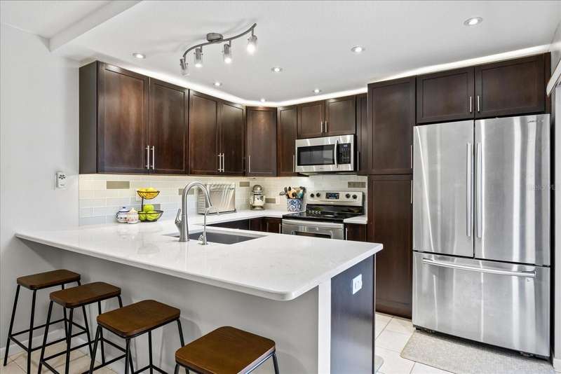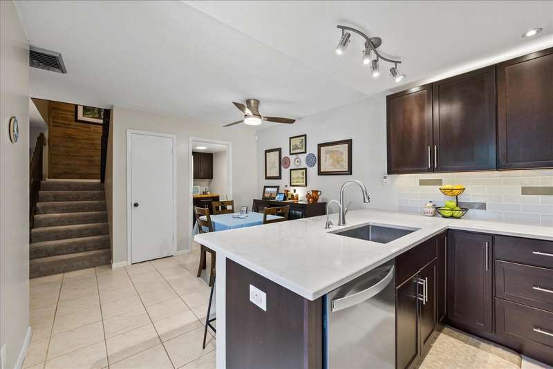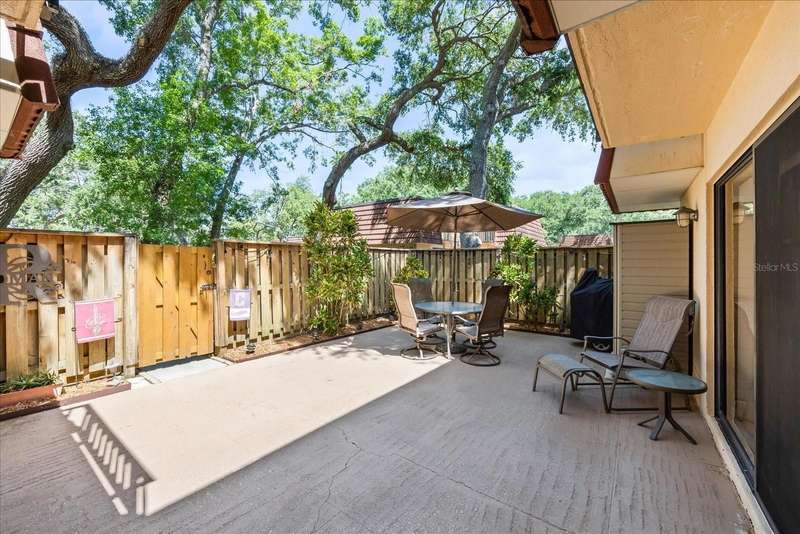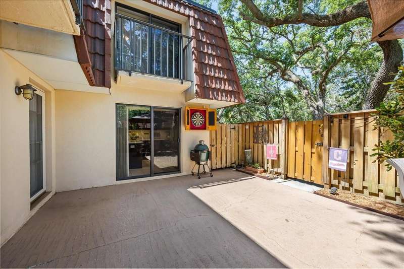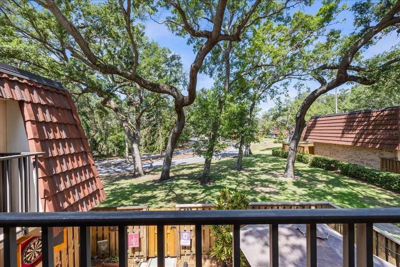 Nestled beneath the shade of majestic oak trees, this charming Mansard-style townhouse offers the perfect blend of privacy, comfort, and natural beauty. Located in the serene community of Wedge Wood in Palm Harbor, this two-level residence lives like a single-family home. Spanning over 1,300 sq ft of living space, it features 2 spacious bedrooms, 2.5 bathrooms, and an impressive, nearly 500 sq ft enclosed courtyard—ideal for outdoor entertaining. Step inside to discover a beautifully remodeled kitchen, thoughtfully updated with hardwood cabinetry, elegant quartzite countertops, a generous breakfast bar, and abundant storage. The sunlit interior is warm and inviting, with natural light streaming through the many windows and private balconies that overlook the lush, tree-lined landscape. Upstairs, the primary suite is a peaceful retreat with a walk-in closet, private balcony, and updated ensuite bath. Additional storage is cleverly integrated throughout the home, making everyday living easy and organized. Exceptionally located within the community, this unit is less than 100 feet from the community pool, clubhouse, and playground! Wedge Wood offers a resort-style lifestyle with amenities for every interest—swimming, tennis, racquetball, basketball, and scenic wooded walking trails. Whether you're active, social, or simply love nature, there’s something here for everyone. Perfectly located near US Hwy 19 and Tampa Rd, you’re just minutes from top destinations like Clearwater, Tampa, and St. Pete, as well as pristine beaches, local parks, and charming towns including Downtown Palm Harbor, Dunedin, Tarpon Springs, and Safety Harbor. Make this your peaceful slice of paradise.