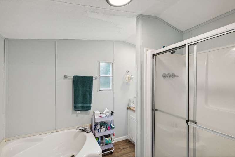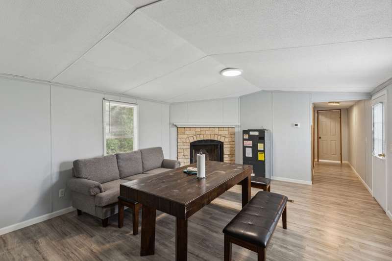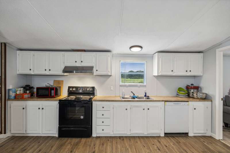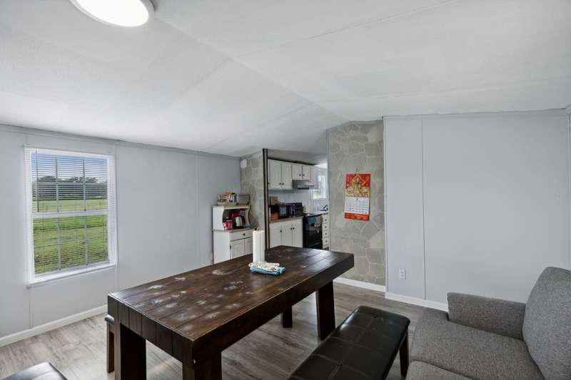 Updated property! This home features 3 bedrooms, 2 bathrooms, open kitchen and spacious living room. Enjoy the acreage around this property and a pond! Kitchen boasts room for a dining space and lots of cabinets. Living room is inviting with a fireplace and natural lighting. Main bedroom is split from secondary bedrooms and features an ensuite bath with a large garden tub, walk in closet, separate shower and amble countertop space. Secondary rooms all have new flooring like the rest of the home and share a full bath. Covered front porch is a perfect place to relax!