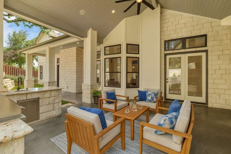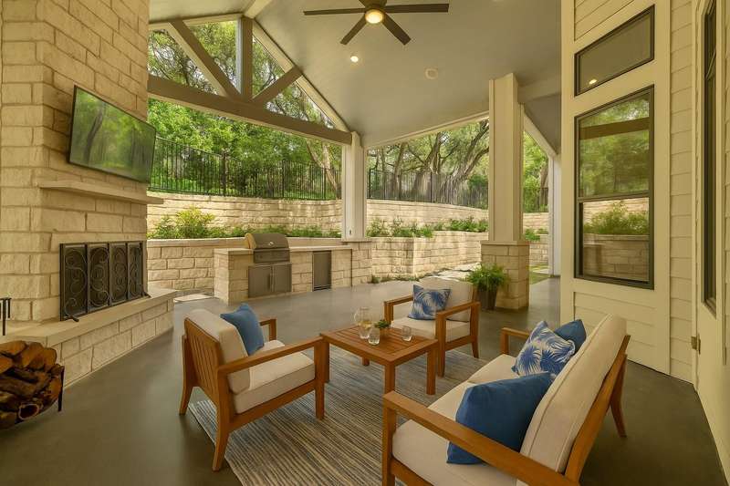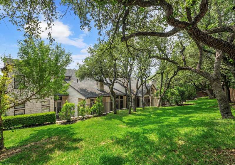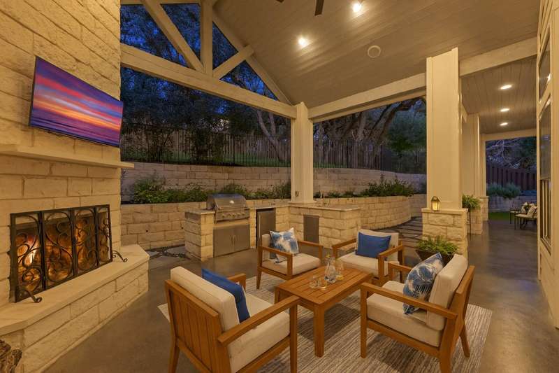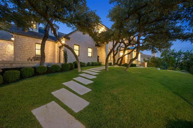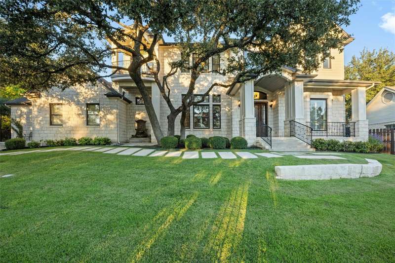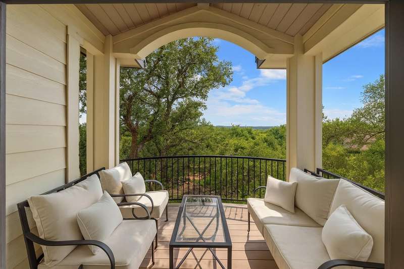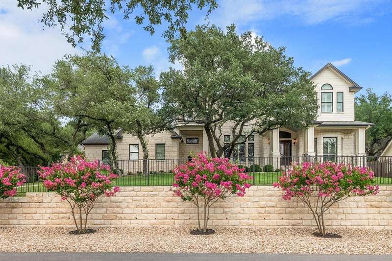 Nestled in the heart of Original Lakeway, this stunning custom home offers timeless elegance, sweeping panoramic views, and a serene setting beneath Texas Live Oaks. Perfectly positioned on a quiet .4-acre cul-de-sac lot, the residence combines luxury, comfort, and thoughtful design! The majority of the square footage is on the main level--giving this home the feel of a true single-story! Solid oak floors, soaring ceilings, walls of windows, and custom finishes create an airy sophistication. The gourmet kitchen is timeless and stunning - featuring custom cabinetry, a center island, gas cooktop, and double ovens. The spacious primary suite is a peaceful retreat with his and hers baths connected by a massive shower and featuring an oversized walk-in closet. The main level also offers a private guest suite with full bathroom, dual living and dining areas, a wet bar, and a butler's pantry with walk-in dish storage--ideal for entertaining. Upstairs, two guest rooms, a large bath, and a third living area with kitchenette make a perfect zone for family or guests. Step out to the upper balcony for spectacular sunset views over the treetops! Outdoor living is equally impressive on the main level with a covered patio, built-in summer kitchen, and plenty of room for a future pool, kids, or pets! Enjoy outdoor living all year long under the canopy and breezy shade of stunning oak trees! Additional highlights include a massive walk-in attic (accessible from both the garage and upstairs), foam insulation for exceptional energy efficiency, and zoned HVAC for year-round comfort. Built by Alkire Construction, known for craftsmanship and attention to detail, this home is truly one-of-a-kind. LOW taxes, no HOA, and walkable access to the Lakeway Swim Center and World of Tennis, the location couldn't be better. Close to Lake Travis, hiking trails, shops, and top-rated schools--this is the Lakeway lifestyle at its best. Don't miss the video tour and pool renderings!