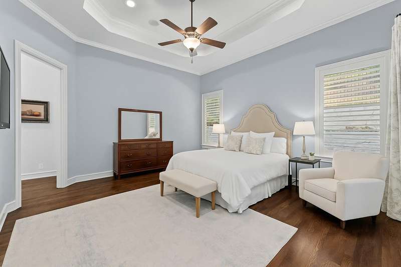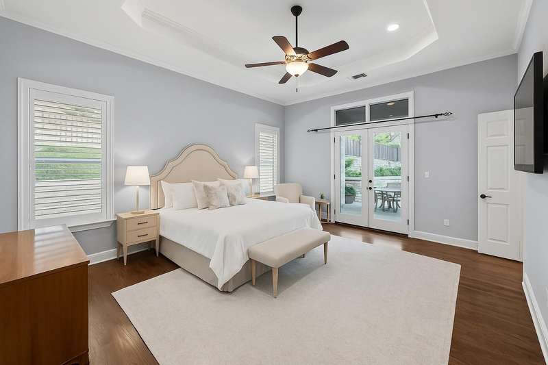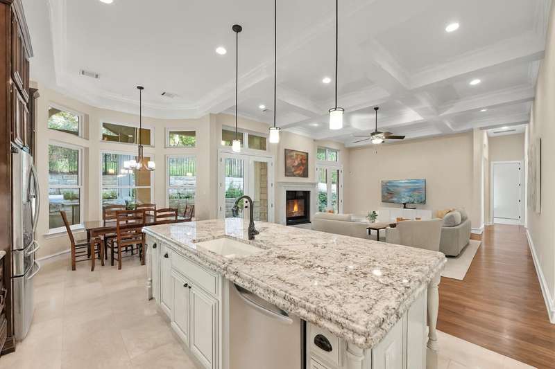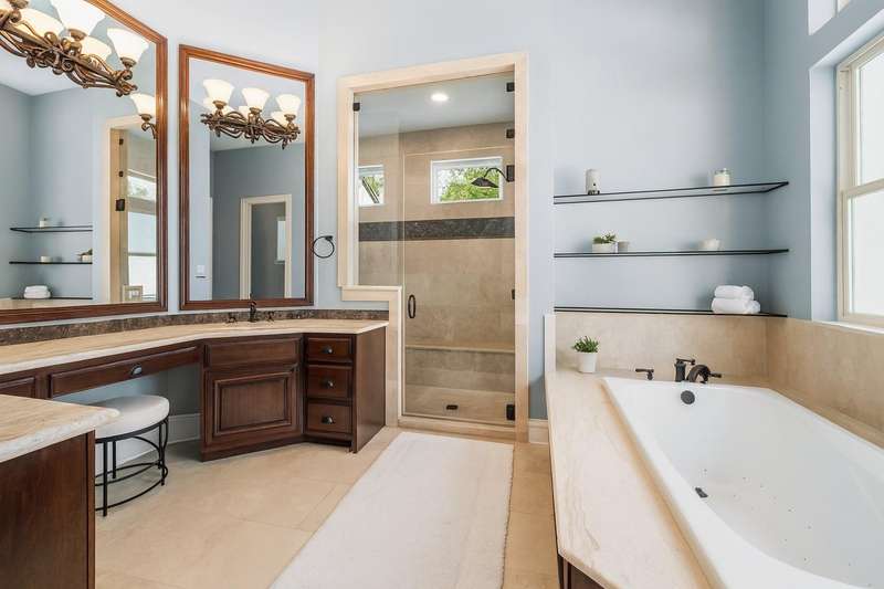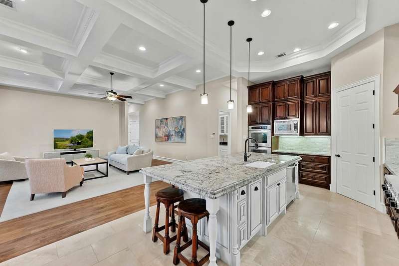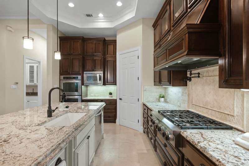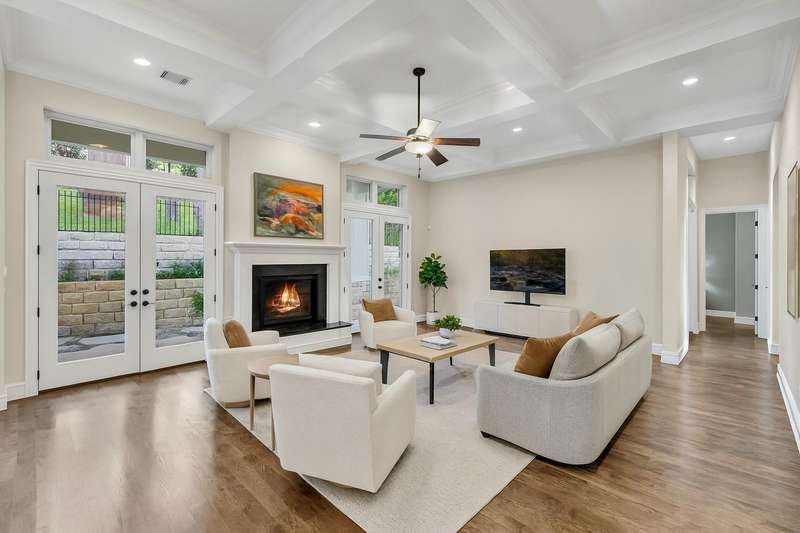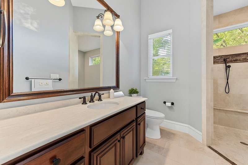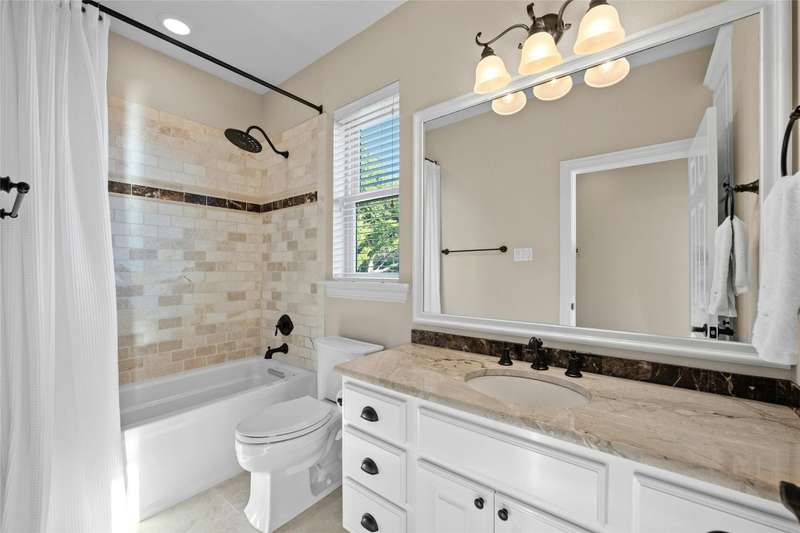 Nestled in the heart of Original Lakeway, this stunning custom home offers timeless elegance, sweeping panoramic views, and a serene setting beneath Texas Live Oaks. Perfectly positioned on a quiet .4-acre cul-de-sac lot, the residence combines luxury, comfort, and thoughtful design! The majority of the square footage is on the main level--giving this home the feel of a true single-story! Solid oak floors, soaring ceilings, walls of windows, and custom finishes create an airy sophistication. The gourmet kitchen is timeless and stunning - featuring custom cabinetry, a center island, gas cooktop, and double ovens. The spacious primary suite is a peaceful retreat with his and hers baths connected by a massive shower and featuring an oversized walk-in closet. The main level also offers a private guest suite with full bathroom, dual living and dining areas, a wet bar, and a butler's pantry with walk-in dish storage--ideal for entertaining. Upstairs, two guest rooms, a large bath, and a third living area with kitchenette make a perfect zone for family or guests. Step out to the upper balcony for spectacular sunset views over the treetops! Outdoor living is equally impressive on the main level with a covered patio, built-in summer kitchen, and plenty of room for a future pool, kids, or pets! Enjoy outdoor living all year long under the canopy and breezy shade of stunning oak trees! Additional highlights include a massive walk-in attic (accessible from both the garage and upstairs), foam insulation for exceptional energy efficiency, and zoned HVAC for year-round comfort. Built by Alkire Construction, known for craftsmanship and attention to detail, this home is truly one-of-a-kind. LOW taxes, no HOA, and walkable access to the Lakeway Swim Center and World of Tennis, the location couldn't be better. Close to Lake Travis, hiking trails, shops, and top-rated schools--this is the Lakeway lifestyle at its best. Don't miss the video tour and pool renderings!