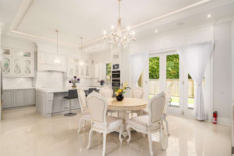 Better than new! Stunning custom home in prestigious Broadmoor. Open-concept design with soaring ceilings in elegant living/dining areas, feature walls, and Schonbek lighting. Gourmet kitchen with premium cabinets, marble counters, and top-tier Sub-Zero & Wolf appliances. Upscale plumbing fixtures, including smart Toto toilet. Main floor media room with ensuite doubles as guest room. Upstairs offers two spacious master suites plus two cozy bedrooms. Huge private deck—perfect for gatherings. Durable diamond-shaped asphalt shingle roof. Smart home system adds comfort and security. Meticulously built for discerning buyers. Walk to top schools, parks, transit, shops, and more. School catchments: Maple Lane Elementary & Steveston-London Secondary.