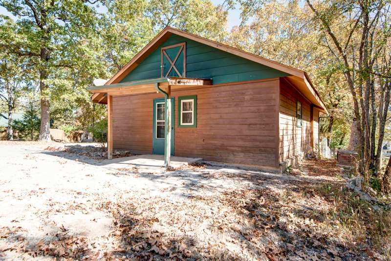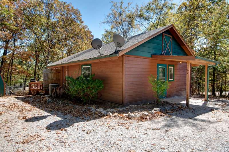 Table Rock Lake cabin! Walk right across the road to lake access for swimming, fishing, kayaking, and boat launch!This charming cabin in the woods is situated on a flat, fenced lot in a quiet lakeside neighborhood, but not too far from town.One level living with an open floor plan makes life easy here. The eat-in kitchen is a wonderful space filled with so much natural light and plenty of counter space. The living room opens directly off of the kitchen and has plenty of room for seating. Additionally there is a great built-in brick area for an electric fireplace, which would make a lovely focal point. So many possibilities here!A nice benefit of this small community is that there is common space for boat and trailer parking.This street name has us waxing poetica poem for 67 The Poet Place:The sun rises up, on Table Rock Lake,a new day is dawning, the birds come awake.I walk down the path to the sparkling pool,I sit on the bank and think ''my life is so cool...''This could be you!