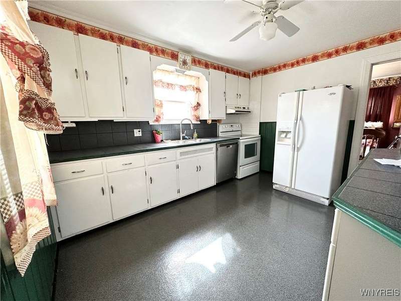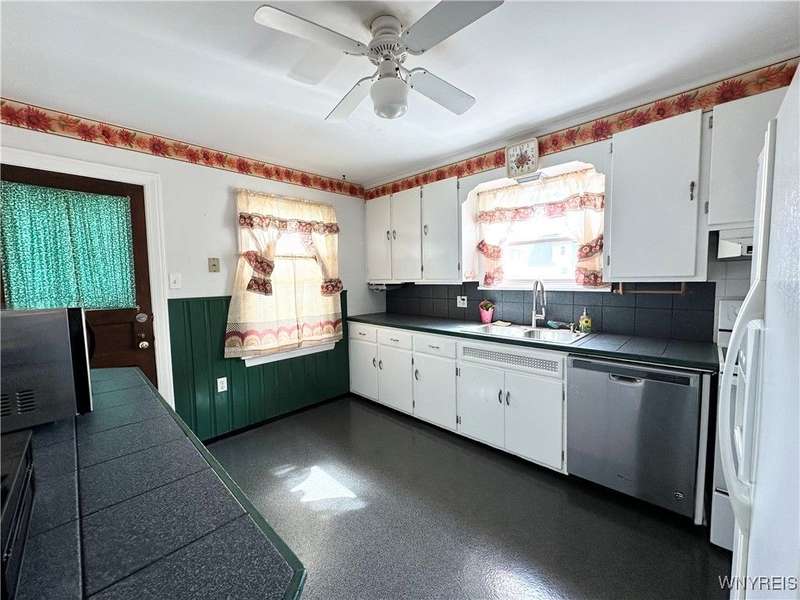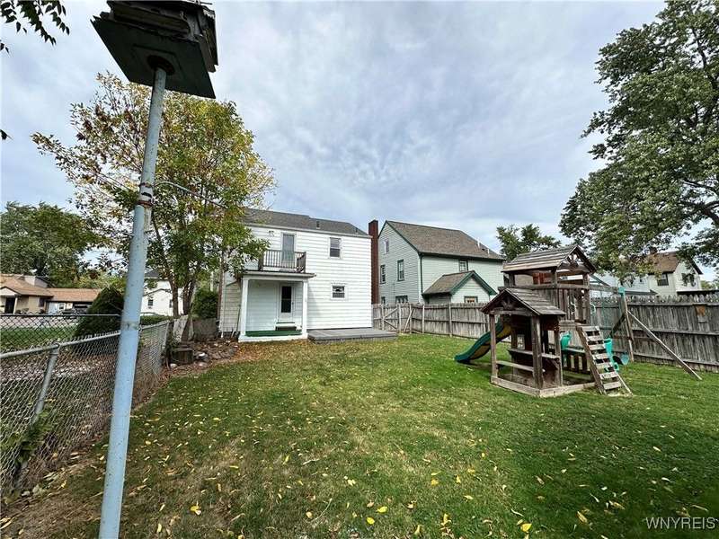 This colonial features a nice sized living room with a wood burning fireplace (NRTC) opening to a formal dining room. Functional kitchen with extra counter space and lower cabinets. All windows and roof have been updated. New A/C 2025 with transferable warranty. Three bedrooms on second floor including a very generous sized primary bedroom with a large closet. Dry basement with plenty of room for storage and possibility to partially finish. Double wide driveway and garage. Fully fenced back yard with deck. Very convenient location: close to shopping, expressway and dining.