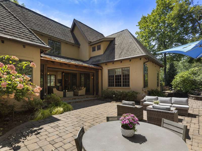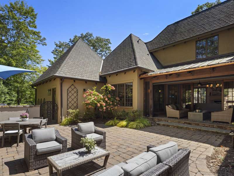 Discover exquisite mountain living in this exceptional home, a superb-quality residence by renowned builder Butch Heatherly. As the original model home for Cove Park, this residence was designed to impress, seamlessly blending sophistication with the tranquility of its natural surroundings.Step inside and be greeted by an open floor plan, where exquisite hardwood floors guide you from a spacious living room with a cozy fireplace to a high-end kitchen. Perfect for entertaining, the gourmet kitchen features a huge island, top-of-the-line appliances (including a 48" Wolf range), and a walk-in pantry. The dining area is bathed in natural light from large Pella windows, providing a lovely space for meals and gatherings. Throughout the home, designer lighting fixtures add a touch of elegance.The residence offers three bedrooms with en-suite bathrooms, including an immense master suite with large walk-in closets, and a powder room on the main level, providing a private and luxurious retreat. Venture outside to a covered porch with a roll-down screen, extending your living space and allowing for comfortable enjoyment of the outdoors. The property's beautifully landscaped courtyard is a true oasis, featuring a stunning multi-tiered water feature with a stone waterfall and a separate, inviting patio area with a stone fireplace and hot tub?perfect for al fresco dining or relaxing on cool evenings. A new landscape lighting system illuminates the grounds, creating a magical ambiance.This home is as functional as it is beautiful, featuring a whole-house water filtration system and an encapsulated crawl space for optimal maintenance.Situated about 500 feet from the community's Wellness Center, residents can take advantage of the indoor and outdoor pools, Har-Tru tennis courts, state-of-the-art workout equipment, and various fitness classes. This home provides the ideal blend of a private sanctuary and access to a vibrant, active community. Club membership is available.