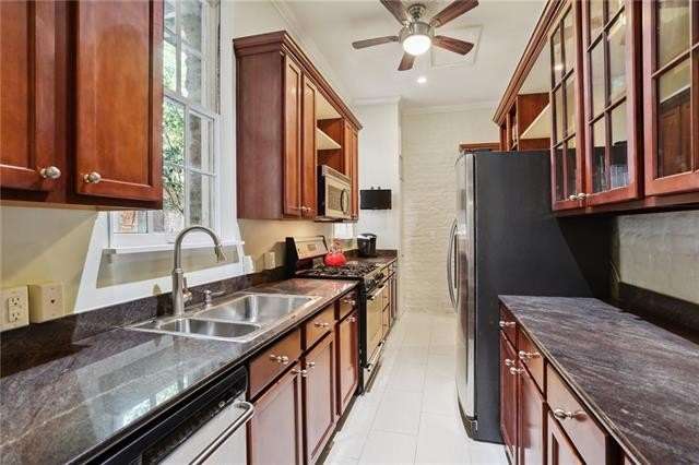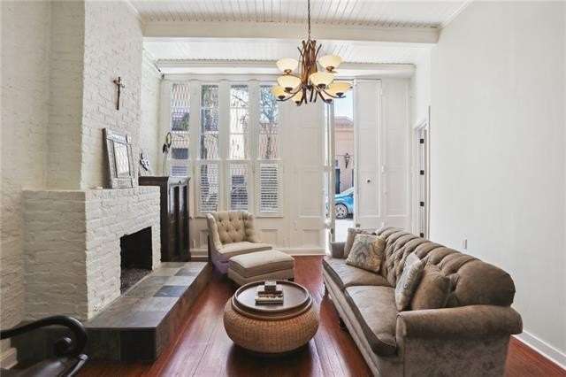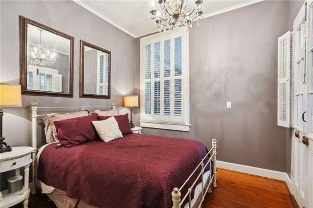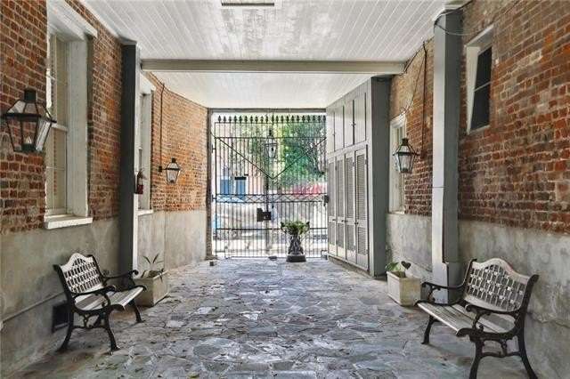 Spotless, spacious and unique condo just two blocks from Jackson Square! This updated condo features a large living room, two independent bedrooms, massive galley kitchen, separate dining room, bonus study/den/studio space. Twelve foot ceilings, exposed brick, real wood floors, numerous windows, incredible amount of storage space in closets and kitchen! Independent street access on Chartres Street, no shared walls with neighbors! Amazing, lush courtyard with several gathering spaces, water features and covered areas. Shared washer and dryer. Strong association.