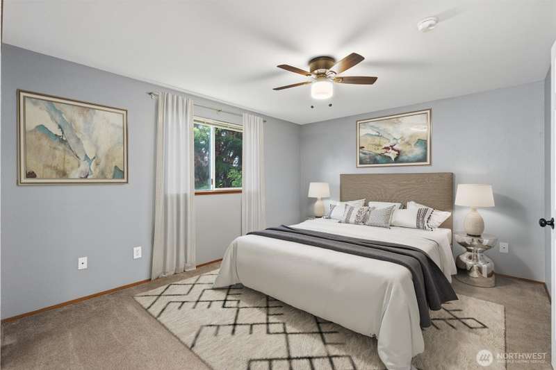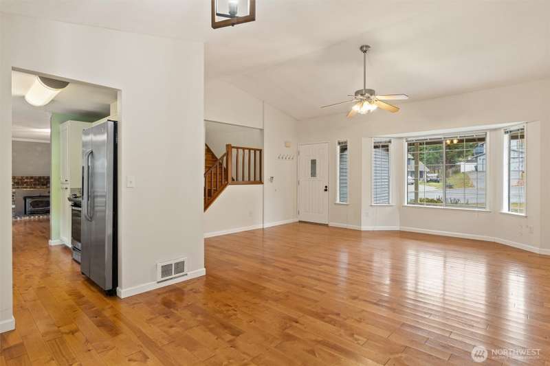 Turnkey 3 bed 2.5 bath Home in Oak Harbor. Move right into the 1,711 sqft 2-level craftsman. Vaulted ceiling & hardwood floors welcome you into a great layout w/ multiple living rooms + wood burning fp. Primary bedroom has en suite full bath. Two additional beds & full bath on upper level. Home has been refreshed w/ interior painting updates, cabinets painted + hardware, new back deck, ss appliances, etc. 2 car garage has newer garage doors & automatic opener. Roof in great shape. Washer/Dryer included. Fully fenced back yard. Covered front patio. Very close to schools & parks. 5 minutes from NAS Whidbey. Minutes to shops/restaurants in town. No HOA. Come check out this awesome home!