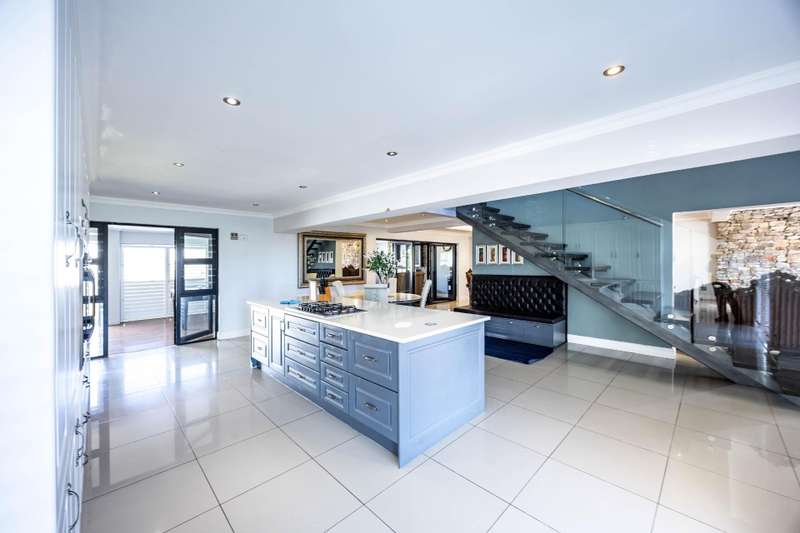 Discover the ultimate in luxury coastal living with this stunning modern double story home, perfectly situated to capture sweeping ocean views in one of the most sought-after locations. From the moment you step inside, the grand double-volume entrance and striking glass staircase make a bold statement, setting the stage for a home where style meets sophistication. Designed for effortless entertaining and relaxed living, the open-plan kitchen flows seamlessly into the dining area and entertainment space and second lounge, complete with a built-in Jet master braai, stylish shutters, and a sparkling pool that invites you to unwind in complete privacy. The main lounge is light-filled and welcoming, featuring a cozy fireplace and expansive windows that frame the view. Downstairs is two bedrooms and one bathroom and upstairs, you'll find four generously sized bedrooms and two sleek bathrooms, along with a study and third lounge (pyjama lounge) plus a sun room Movie nights are taken to the next level in your very own private cinema room, located separateely outside for the ultimate immersive experience With high end finishes throughout and a layout designed for both comfort and elegance, this home is a true sanctuary for those with a eye for luxury Don't miss the opportunity to make this masterpiece your own! Contact me today to arrange a private viewing