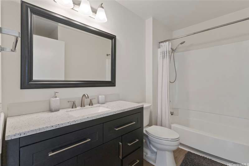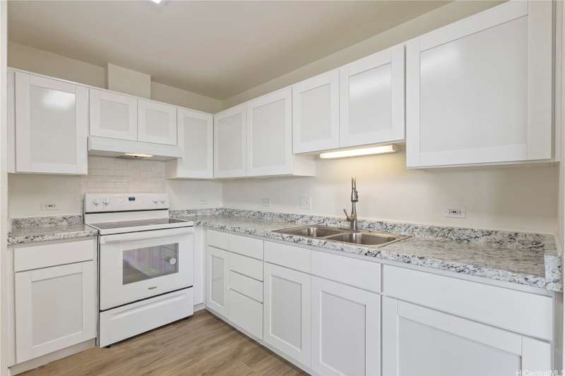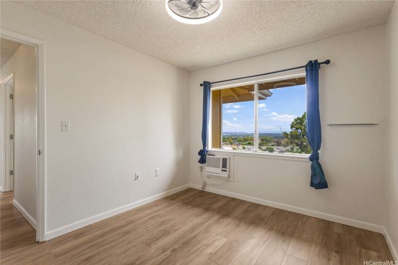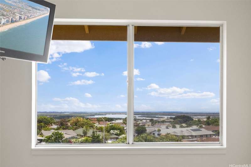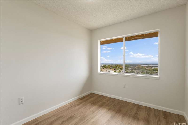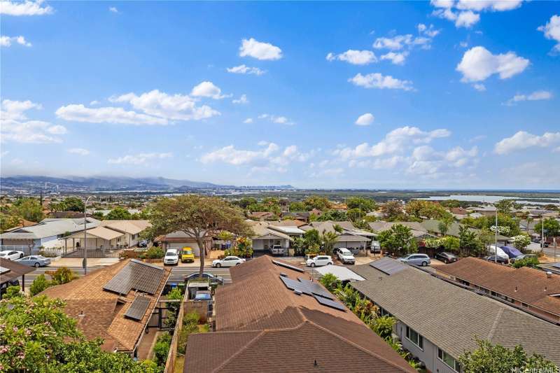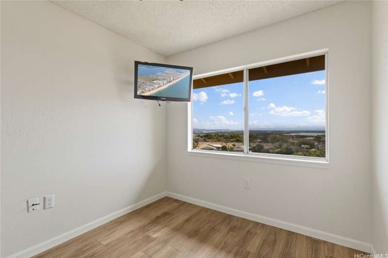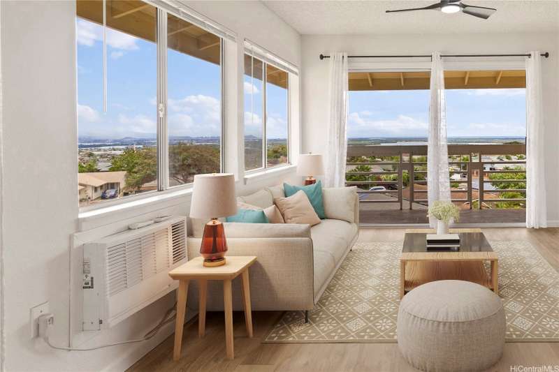 LOCATION, LOCATION! Fabulous corner-end 3-bedroom, 2-bath unit with breathtaking panoramic views—Diamond Head, ocean, city, coastline, and mountain. It feels like you're living on the edge of the world. Freshly painted and EXTENSIVELY RENOVATED with BRAND NEW: countertops, luxury vinyl flooring and baseboards throughout, range, range hood, kitchen sink, ceiling fans, blinds, bathroom vanities, and more. Features include a convenient in-unit washer and dryer, exterior storage closet, and two assigned parking spaces. This lovely PET-FRIENDLY community offers an on-site office, guest parking, secured entry, walking paths, kiddie playground, and is ideally located near shopping, restaurants, and schools.