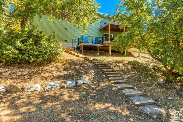 Multiple Offers Received, Please Submit Highest & Best by 9/29/25 @ 5pm! Welcome to this immaculate Fruit Heights rambler nestled on over half an acre in a quiet, private setting with incredible mountain and valley views. The updated kitchen features granite countertops, double ovens, gas range, and hardwood flooring, opening into inviting living and dining spaces filled with natural light. Walkout basement to lower patio. Large family room down w/ ample storage. Enjoy outdoor living with a balcony, mature trees, scrub oak, sprinklers, and a wooded backdrop that provides privacy and serenity. Two car garage w/ workbench and workshop space-perfect for projects or storage. New roof in 2021, Water Heater 2024, A/C & Furnace 2023.