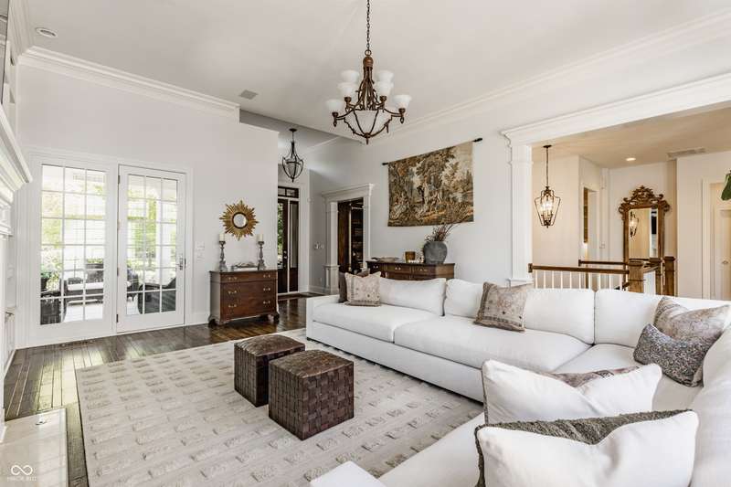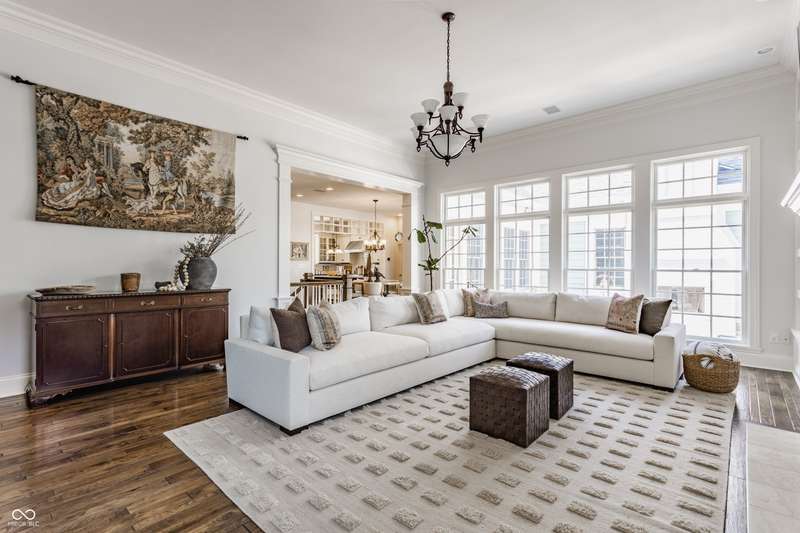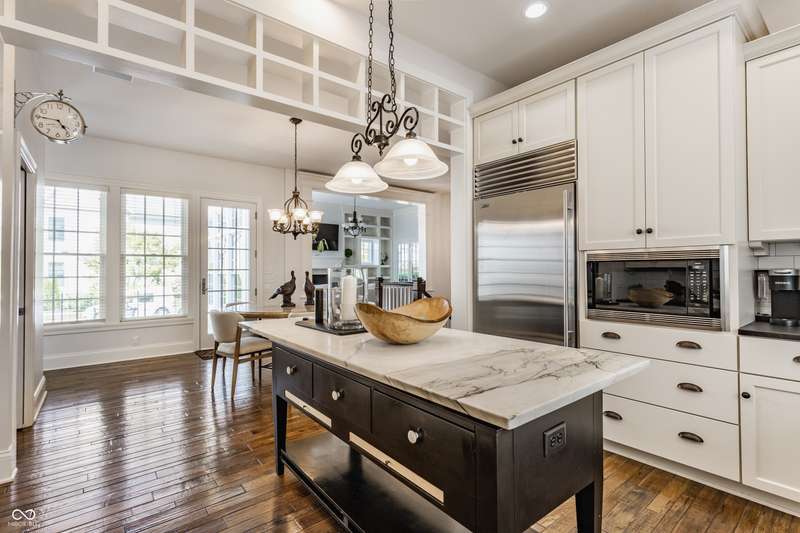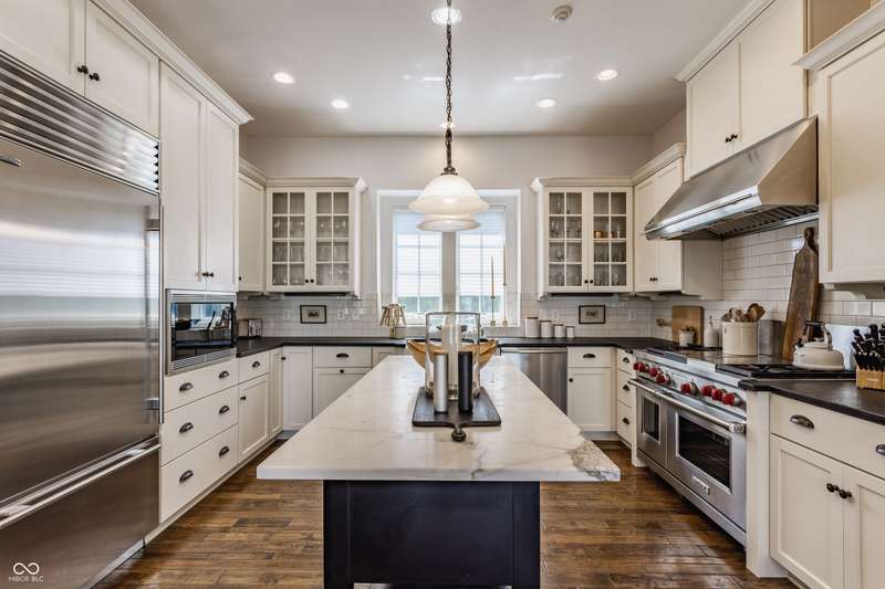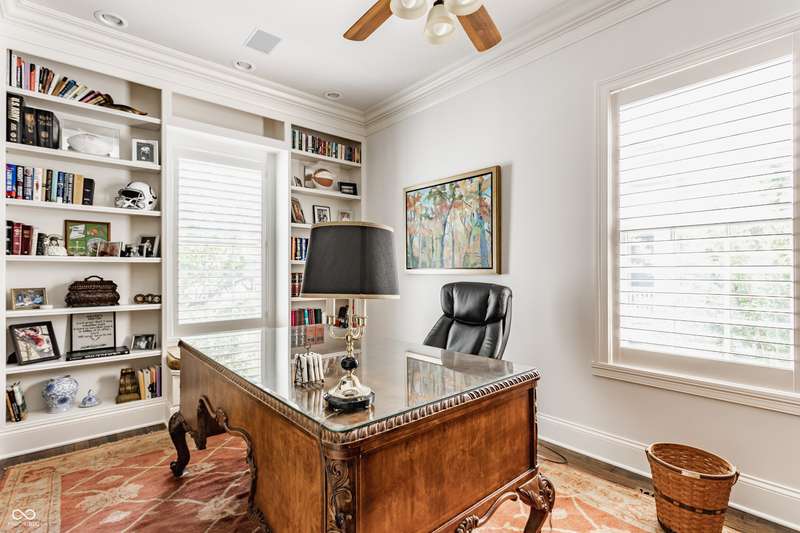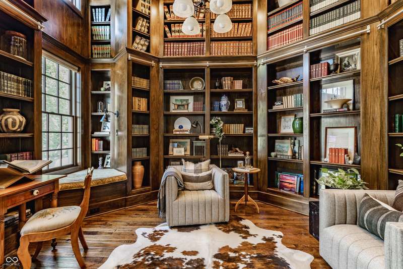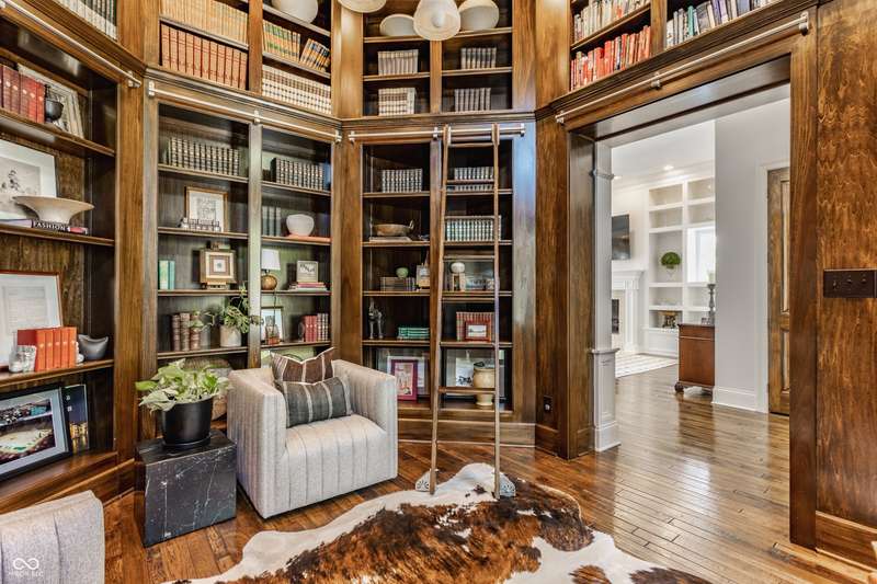 Exuding timeless elegance and bespoke charm, this exquisite residence in the prestigious Village of WestClay has been meticulously designed with impeccable craftsmanship and elevated finishes throughout. A sweeping, gracious front porch welcomes you, setting the stage for refined entertaining and leisurely enjoyment of the vibrant, picturesque neighborhood. Upon entry, discover an artfully conceived floor plan that harmoniously blends generous main-level living with sophisticated spaces. A richly appointed library, outfitted with dramatic floor-to-ceiling bookshelves, provides a sanctuary for the true bibliophile. Concealed behind a paneled wall, a hidden office offers a secluded and serene workspace-ideal for the modern professional. The grand great room makes a striking impression, showcasing custom built-ins, dual access to the front porch and side patio, and the inviting ambiance of a gas fireplace. The gourmet kitchen is a culinary masterpiece, featuring state-of-the-art appliances including a Wolf gas range with dual ovens, Sub-Zero refrigerator, and Wolf microwave. Leathered granite countertops, a marble-clad center island, farmhouse sink, and a spacious walk-in pantry elevate both form and function, creating a space as stylish as it is functional. The main level primary suite is a private retreat, offering direct access to the side patio, an opulent ensuite bath, and an expansive walk-in closet. Downstairs, entertain with ease at the full wet bar, complete with dual beverage refrigerators, host cinematic evenings in the dedicated home theater, or showcase your collection in the temperature-controlled wine cellar. Two additional bedrooms and a full bath provide luxurious accommodations for guests. Additional storage space with epoxy-finished flooring is conveniently accessible from the garage. Perfectly situated within the sought-after Village of WestClay, this remarkable home offers unparalleled access to a wealth of premier amenities.
