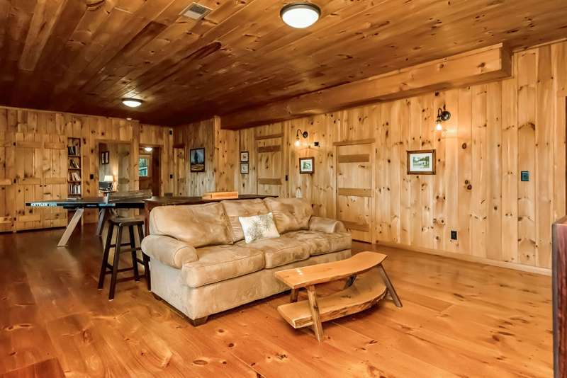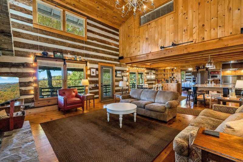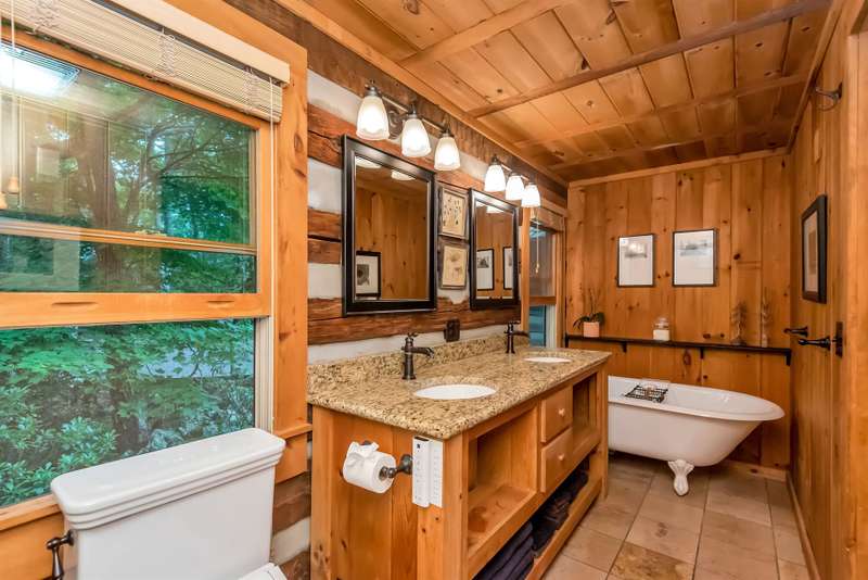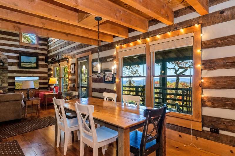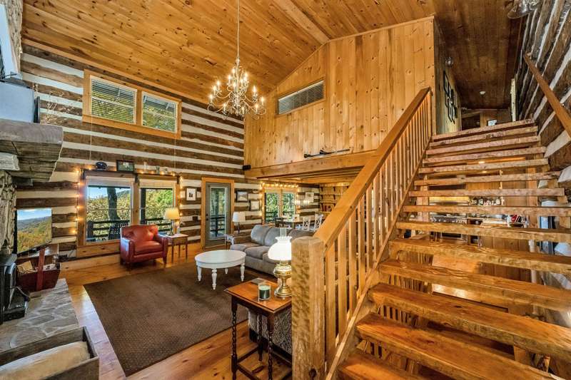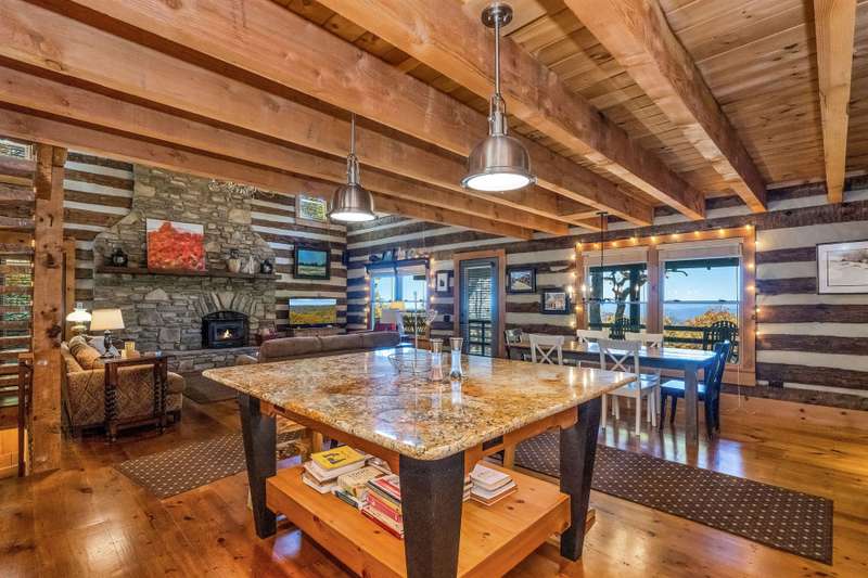 Wake up to the view of Grandfather Mtn. while enjoying your morning coffee on the covered back deck of this exquisite antique log cabin. This cabin masterfully combines rustic charm with modern conveniences, creating an inviting retreat. Upon entering the front door, you are greeted by a spacious foyer and a convenient 1/2 bath. The great room seamlessly integrates the kitchen, dining, & living areas, making it ideal for hosting gatherings. The chef's kitchen presents commercial-grade appliances and an expansive island. The main level boasts a luxurious primary suite with stunning mountain views to greet you every morning. The private en-suite bath is a haven of relaxation, offering granite double sinks, a tiled shower, and a soaking tub. The upper level is designed with guests in mind, featuring 2 spacious bedrooms and a full bath. Each room provides comfort and privacy, making your guests feel right at home. The lower level is a versatile space, featuring an expansive family room. Also includes another full bath and 2 bonus rooms currently set up as bedrooms, ideal for accommodating additional guests. The wrap-around covered porches and expansive outdoor living room make this cabin an entertainer's dream. Whether hosting a summer BBQ or enjoying a quiet evening by the wood-burning outdoor fireplace, you'll love spending time outdoors. The fenced backyard is ideal for gardening and/or pets. A detached garage offers even more space for guests, featuring a sitting room, sleeping area and full bath, creating a private guest suite. The lower level of the garage provides parking for 2 cars and room for a workshop, catering to all your storage and hobby needs. Every detail of this home has been thoughtfully designed and meticulously maintained, making it a truly exceptional property. With its stunning views, lavish amenities, and charming rustic appeal, this antique log cabin is the perfect mountain retreat for making lifelong memories with family and friends.