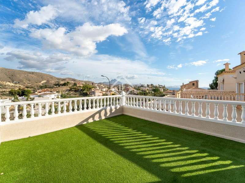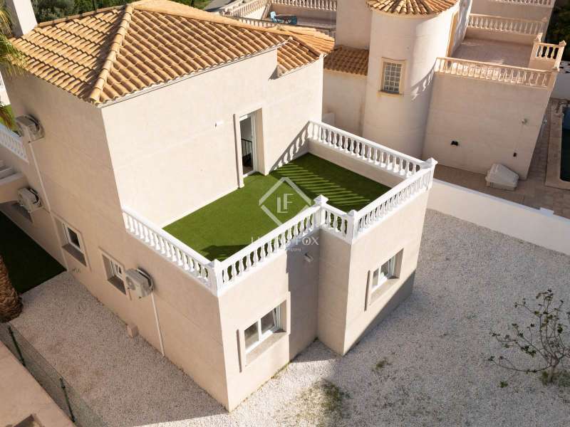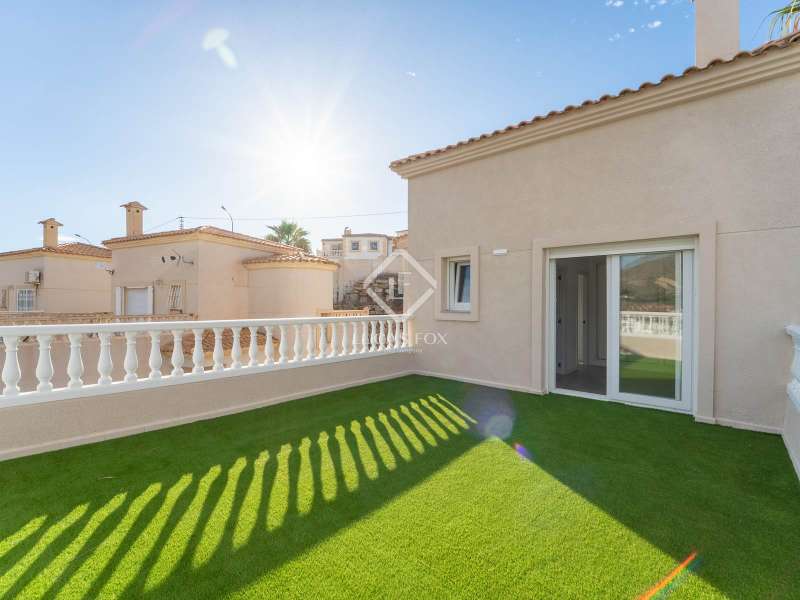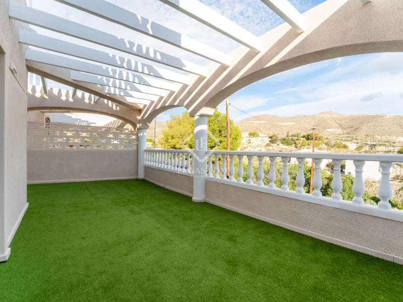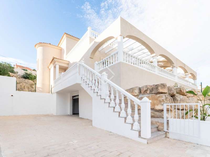 This brand-new, fully renovated villa in Venta Lanuza offers modern Mediterranean living with high-quality finishes. Spread across three floors, it features three bedrooms, two bathrooms, and multiple outdoor spaces. The main floor includes a garage, while the first floor enjoys an open-plan living room with kitchen, connected to a terrace, two bedrooms, a bathroom, and a charming south-facing garden. On the top floor, the main suite boasts an en-suite bathroom, built-in wardrobes, and access to a private terrace with stunning views of the Puig Campana and the Mediterranean Sea. The villa includes air conditioning throughout, and there is an option to add a pool or a fourth bedroom. Set in a quiet residential area near Cala Merced, this home is surrounded by the essence of coastal living, with cafés, restaurant, and the beach just moments away. The Lanuza tram stop is within walking distance, and connection to Campello town in just 10 minutes. This villa is the perfect combination of tranquility, comfort, and Mediterranean charm, ideal as a holiday home or permanent residence by the sea.