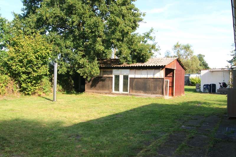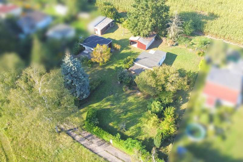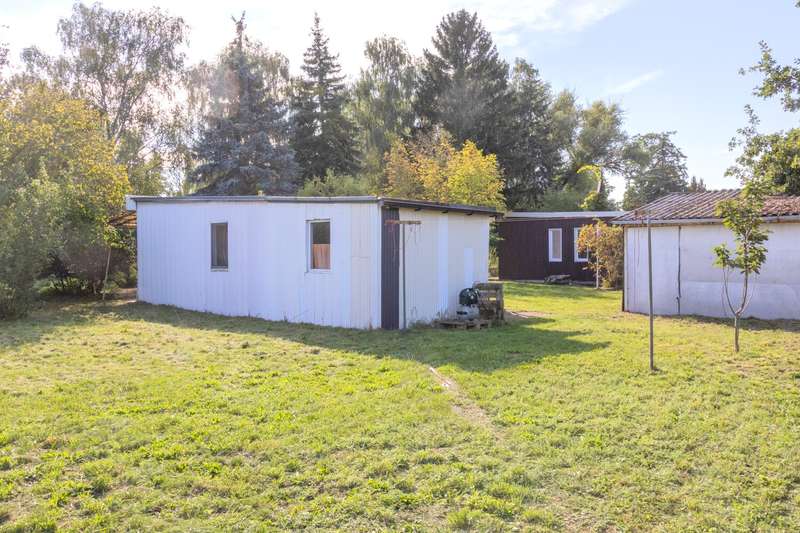 Welcome to a place that invites you to take a deep breath. This unique ensemble of two weekend houses lies in the middle of an idyllic landscape. After just a few steps, the view opens up onto a network of canals and small lakes that gently extend towards the wide Beetzsee. On the 9,087 m² plot, you will not only find approx. 1,631 m² of weekend land, but also an impressive water area of approx. 5,886 m² - including its own bathing and sunbathing platform. A private gravel path (approx. 100 m) leads you directly to your personal retreat. Bungalow I, a HW 22 from 1979, offers approx. 30 m² of living space with two bright rooms with large windows, a small kitchen with kitchenette, fridge/freezer and oven as well as a bathroom with washbasin. The laminate flooring creates a homely atmosphere. The electrics were extensively renewed in March 2024 - so you can move in immediately and enjoy next summer. Bungalow II, a type A 20 gazebo from 1976, is the perfect place for guests, hobby projects or creative ideas with approx. 27 m² of living space. Here too, large windows provide plenty of light. A flush toilet, a storage room and a power connection are available. The robust concrete floor provides a solid foundation for your plans. The use is permitted within the scope of the outdoor area (§ 35 BauGB), renovations are permitted. It is important to note that according to an expert opinion (expert D. Wagner) and sampling, asbestos boards are partially installed, including in the extension, garage and shed roof. A favorable renovation offer is available. Natural defects of a garden such as mold, moisture and pest infestation must be taken into account, as must the registered right of way. The extensive plot is a paradise for nature lovers: fruit and ornamental trees such as cherry trees, lilacs, vines and a majestic oak create a picturesque backdrop. A barbecue fireplace, a fire bowl, an outdoor shower and fountains for watering the garden make the ensemble an ideal meeting place for groups of friends or families who want to spend time together. Whether fishing, water sports, gardening, DIY, animal husbandry, sustainable projects or simply relaxing - the possibilities are almost limitless. This offer combines closeness to nature with creative perspectives.