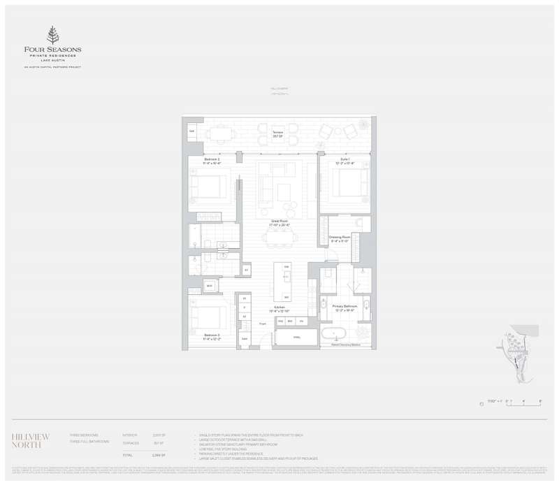 Four Seasons Lake Austin Secures Full Capitalization as of July 2025, planned vertical construction start Fall 2025. Four Seasons Private Residences Lake Austin: On +/- 205 acres of pristine natural landscape and private waterfront, this magnificent project is crafted for the highest levels of privacy, comfort, and convenience. Guided by the vision of timeless design, refined materiality, and precise craftsmanship, Lissoni & Partners curated a selection of interior palettes to emphasize thoughtful customization and natural continuity between the resort environment and residential experience. Violet 4B is a 3-bedroom, 3-bathroom residence that enjoys a living experience blurring the boundaries between indoor and outdoor to fully embrace the natural environment with ample exterior living space. It is one in a collection of a select number of residences that enjoy exclusive access to amenities including: Lake Clubhouse & Private Marina - lakeside leisure with a variety of boats to choose from, The Upper Clubhouse - designed to merge with the lake horizon, with an infinity edge pool, lounge chairs and private cabanas. Theater - an immersive viewing experience for large-scale gatherings. The Indoor Sports Club & Spa & Wellness Club - over 76,000 sqft for a variety of athletic pursuits and relaxation. These exceptional amenities are managed by Four Seasons, the gold standard in luxury hospitality. Tax and assessed values are estimates for illustration purposes only. All figures should be independently verified.
