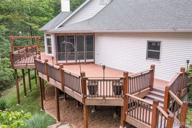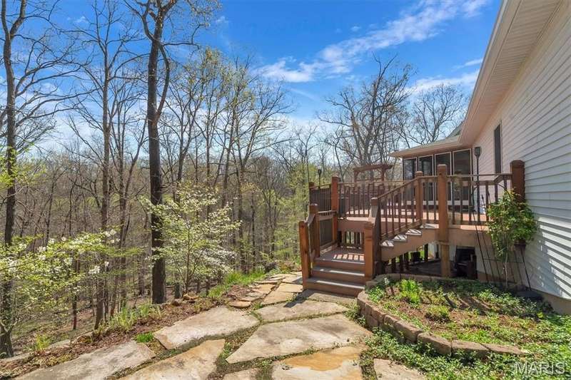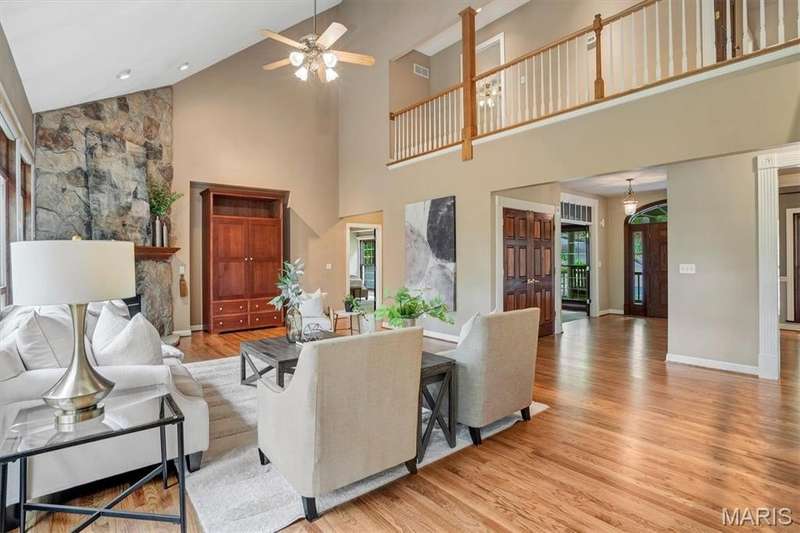 OPEN HOUSE CANCELED! Custom Built 1 Owner Home in the Prized Ossenfort in Wildwood! Take the winding trail down to your private oasis with large front porch made for sunsets! The foyer welcomes you w/ refinished hardwoods, home office, large dining space w/ oversize windows. Great room w/ vaulted ceilings, focal fireplace that lean into the kitchen/breakfast room. Chef's kitchen w/ granite tops, custom cabinets, & quality appliances including a new double oven. Coffee/wine bar are nearby on your way to the mudroom, laundry & half bath. Primary suite offers a sitting area, oversize bath, separate tub/shower and large walk in closet. Nearby is an additional powder bath for guests. Two additional jack and jill beds + bath are located upstairs. Expansive WO/LL features a craft/hobby room, flex recreation room w/ fireplace & guest ensuite w/ full shower bath, storage and workshop area. Septic recently checked & updated, central vac, some new window seals. PLUS, screened in back porch and wrap around deck.