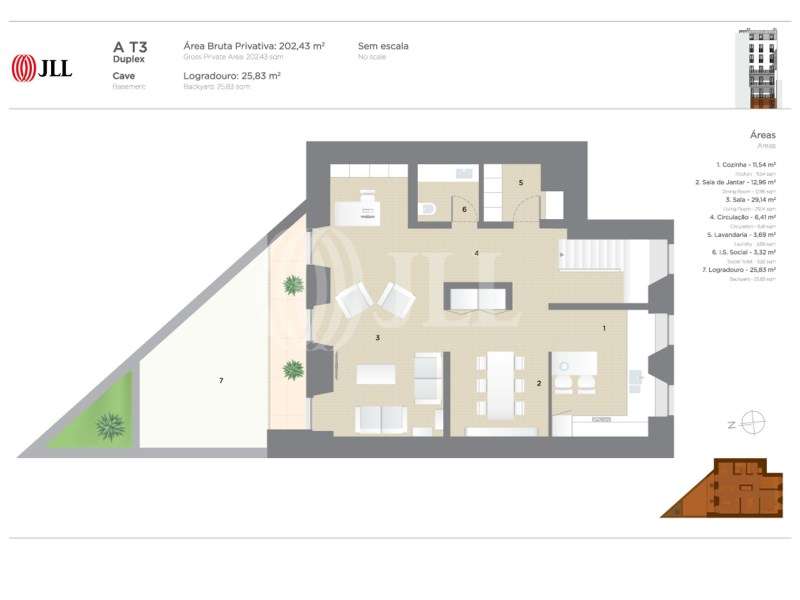 Apartamento T3 duplex, com 202 m2 de área bruta privativa e pátio privativo de 25,53 m2, inserido no Palmira 28, em Arroios, Lisboa, com estacionamento exclusivo para residentes. Inserido em edifício totalmente reabilitado com 7 pisos e elevador, onde foi mantida a fachada original com azulejos e as pequenas mansardas trabalhadas. O Palmira 28 é composto por apenas 7 frações residenciais de T1 a T3, sendo este T3 duplex localizado no piso térreo e semi-cave. O apartamento é composto por piso térreo com hall de entrada, um quarto em suite de19,51m2 com walking closet e dois quartos com casa-de-banho de apoio. No piso inferior, sala de jantar e sala de estar com 42 m2, casa-de-banho social, cozinha totalmente equipada com eletrodomésticos SMEG, lavandaria e pátio privativo. Equipado com ar condicionado, porta blindada, vídeo porteiro, vidros duplos, isolamento térmico e acústico e roupeiros embutidos. Localizado na vibrante freguesia de Arroios, numa zona com excelente oferta de comércio local, restauração e serviços. A poucos minutos walking distance do Martim Moniz e da Baixa de Lisboa, a 2 minutos do Metro Arroios e Anjos, e a 10 minutos do centro histórico de Lisboa. Proximidade a diversas escolas, incluindo o Instituto Superior Técnico, e fácil acesso aos principais eixos de transporte da cidade através da rede de transportes públicos. Categoria Energética: B #ref:93719