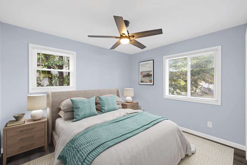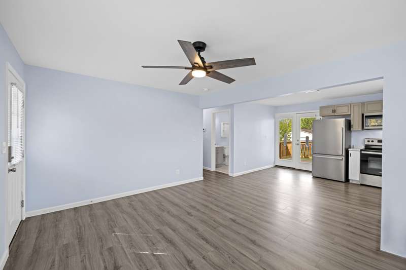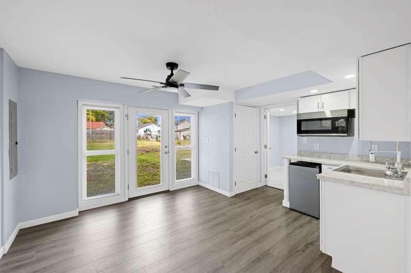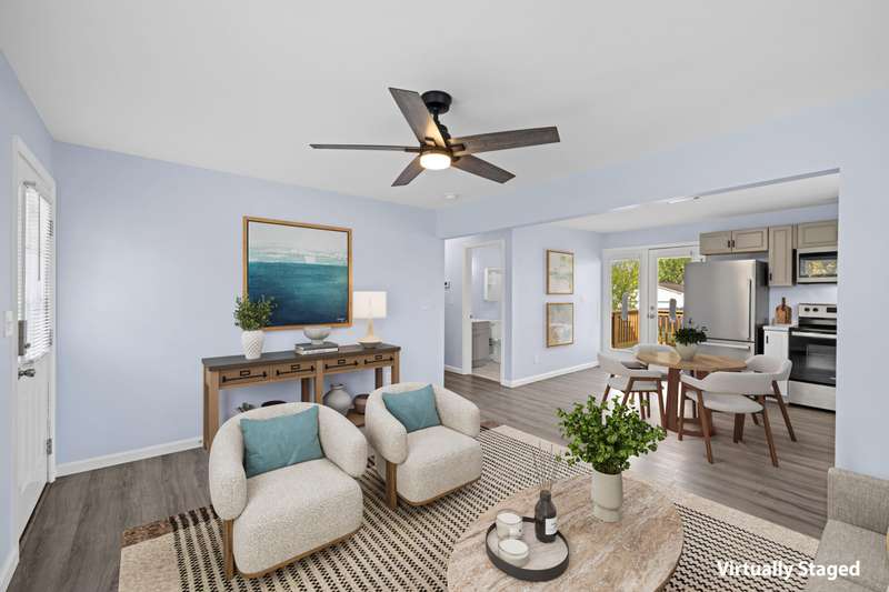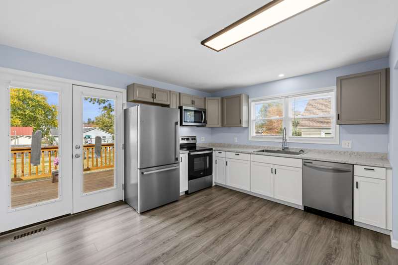 Completely renovated and move-in ready, this stunning 5 bedroom, 4 bathroom homes with charming blue siding offers the perfect lend of style, comfort, and functionality. The main floor features a bright, open-concept kitchen and living area with elegant finishes and French doors that open onto a spacious deck overlooking the fenced-in back yard-- ideal for entertaining or kicking-back to relax. Three bedrooms and two bathrooms on the main floor with two bedrooms, two bathrooms, laundry room, kitchenette, and large family room are on the lower level with two separate entry doors from the back yard, with plenty of parking for multi-generational living. Easy 25 minute commute to Charlottesville, VA and Shenandoah Valley Regional Airport.