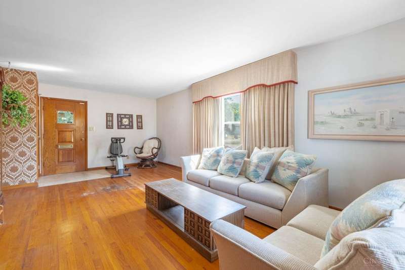 Tri-level with 3 bedrooms, 1.5 baths, hardwood floors on main & upper levels, family room addition with fireplace, and eat-in kitchen with appliances. Enjoy a fenced yard with mature trees, covered patio, shed, oversized 2-car garage, plus updated roof, furnace & A/C