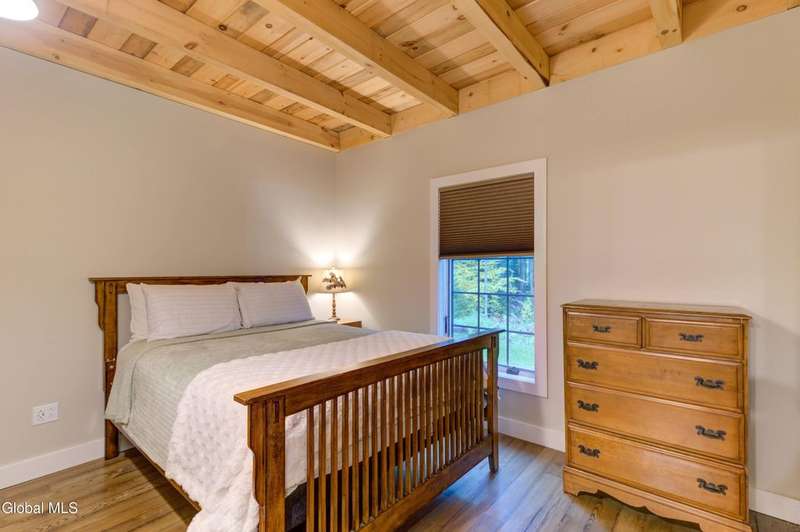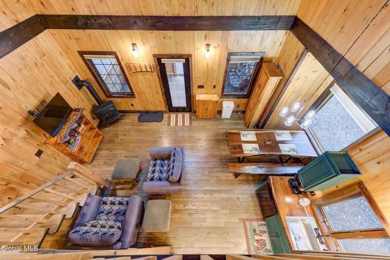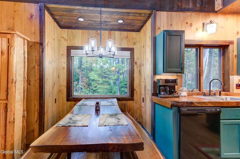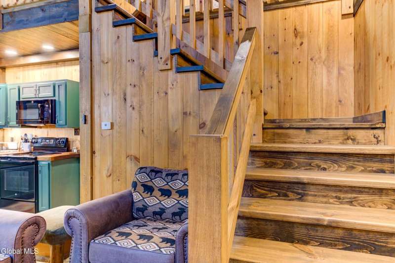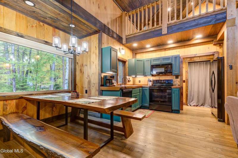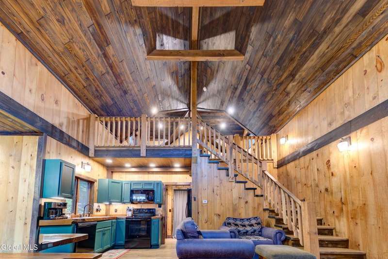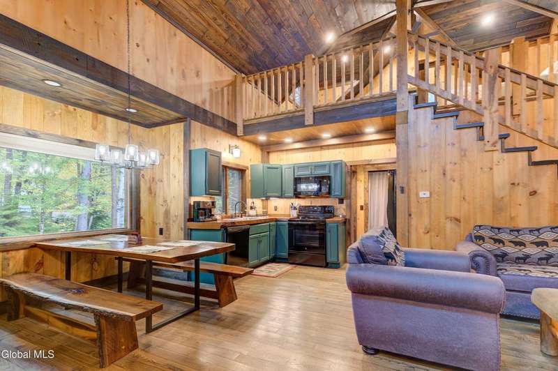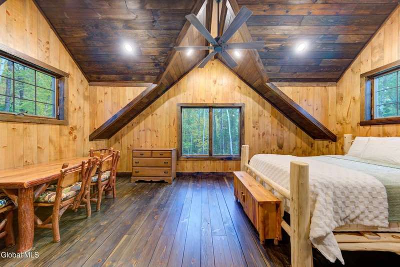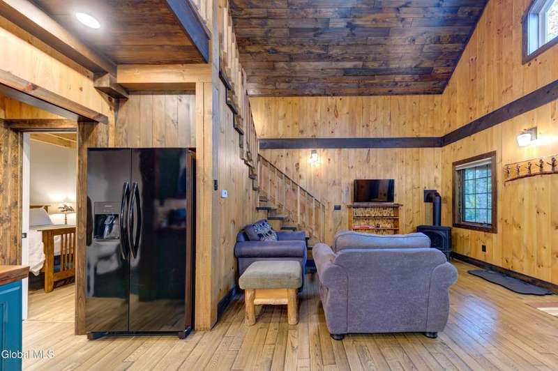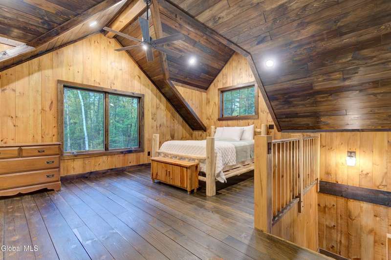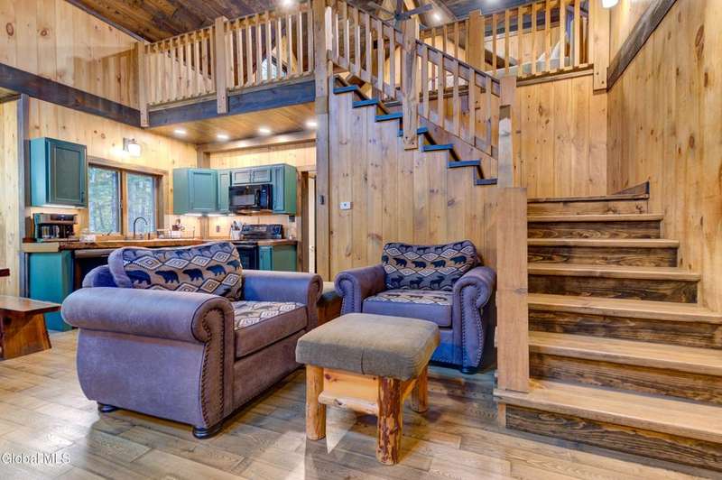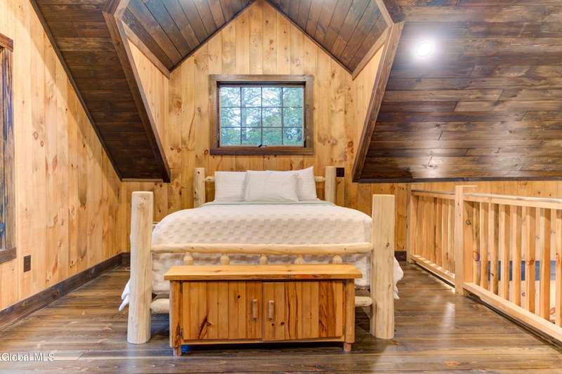Welcome to this charming Adirondack cottage located in the heart of Speculator. Built in 2023, this thoughtfully designed home blends rustic character with modern comfort, offering an ideal year-round retreat. Set on nearly an acre, the property provides both privacy and convenience, just minutes from the village, public beach, lakes, golfing, and Oak Mountain Ski Center.Inside, you'll find over 1,000 square feet of inviting living space with vaulted ceilings, an open living and dining area anchored by a cozy gas stove, and an eat-in kitchen with modern appliances and rustic live edge countertop. The main floor includes a comfortable bedroom, full bath, and laundry closet, while the second bedroom upstairs loft provides flexibility for guests or a home office. Beautiful knotty pine walls and luxury vinyl plank flooring throughout adds durability and easy maintenance. Best of all, the home comes fully furnished, so you can move right in and immediately enjoy your Adirondack getaway.Outdoor living is just as appealing with a spacious screened front porch and space for gathering around a beautiful firepit. A lean-to offers shelter, storage space or an extended entertaining area. Ample parking for up to eight vehicles.If you're seeking a vacation getaway, this home captures the best of Adirondack living with easy access to lakes, trails, and four-season recreation. Schedule a showing today and see why this property is the perfect mountain escape!