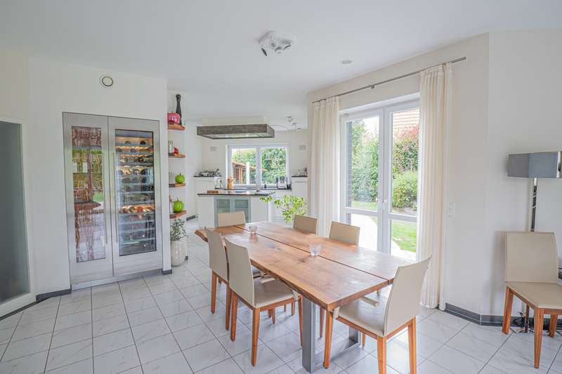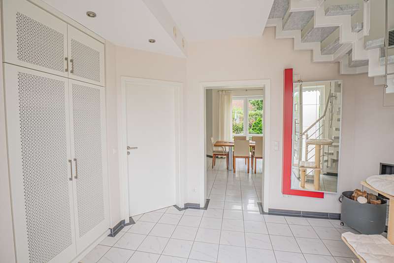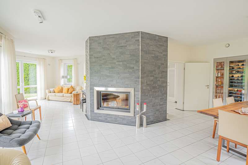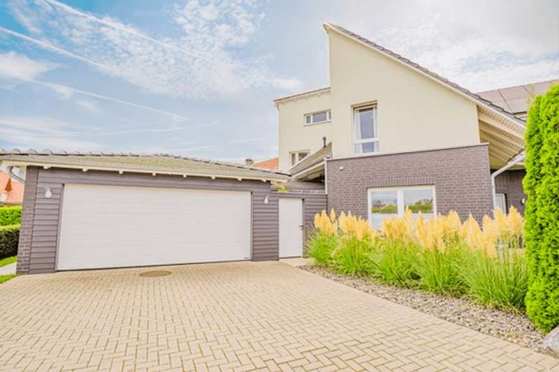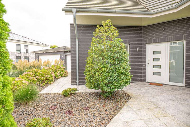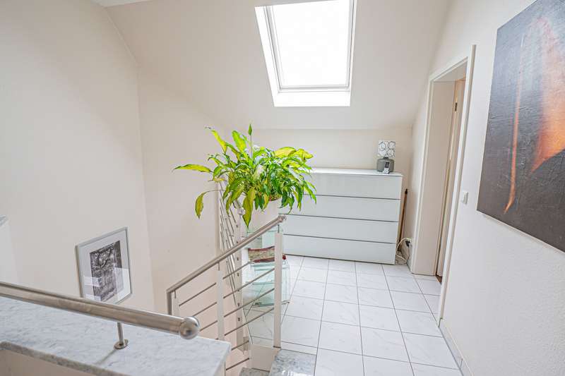 This very spacious detached house with high-quality fittings is situated on a beautifully ingrown, approx. 823 m² plot in an attractive cul-de-sac location. Let yourself be inspired! The property boasts a particularly impressive floor plan, which creates a clever combination of open-plan living and a cozy feel-good atmosphere. All rooms and hallways are also characterized by many windows, above-average brightness and very generous room dimensions. At the center of the first floor is the spacious, cleverly angled living and dining area with a large fireplace and the adjoining, high-quality fitted kitchen. There is also a stylish guest WC and a utility room with custom-made built-in cupboards. In addition to two spacious children's rooms with an additional bathroom, the top floor has a separate parents' area that ideally combines a bedroom, dressing room and spa bathroom. The appeal of this property is rounded off by modern, high-quality fixtures and fittings, including a high-performance photovoltaic system, a ventilation system with heat recovery and a comprehensive home automation system. A sound system is also available throughout the house and can be controlled digitally. In addition, a spacious double carport closed on three sides with an adjoining utility room provides space for two vehicles. Have we managed to inspire you? Then we look forward to hearing from you!
