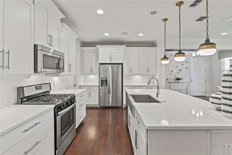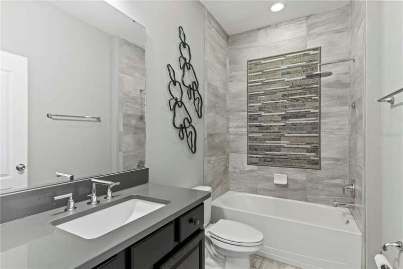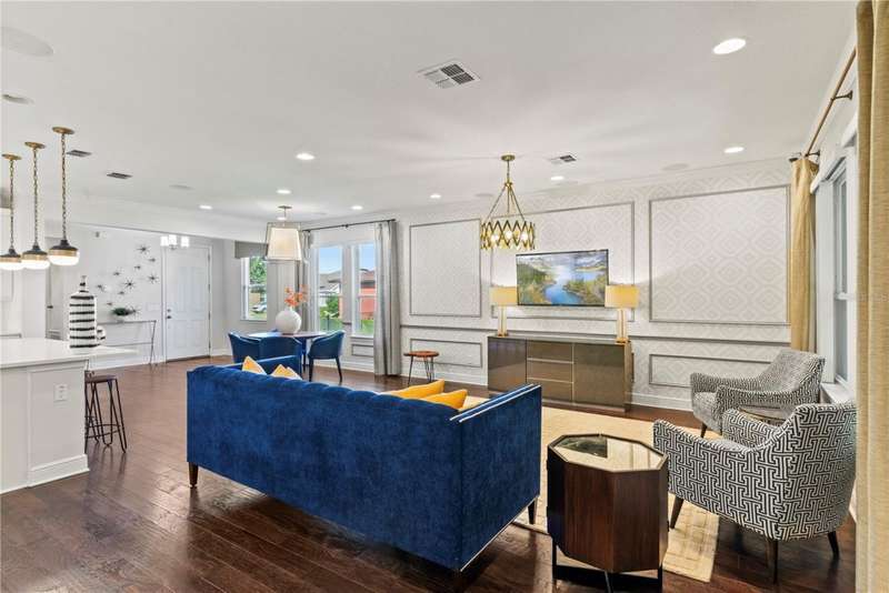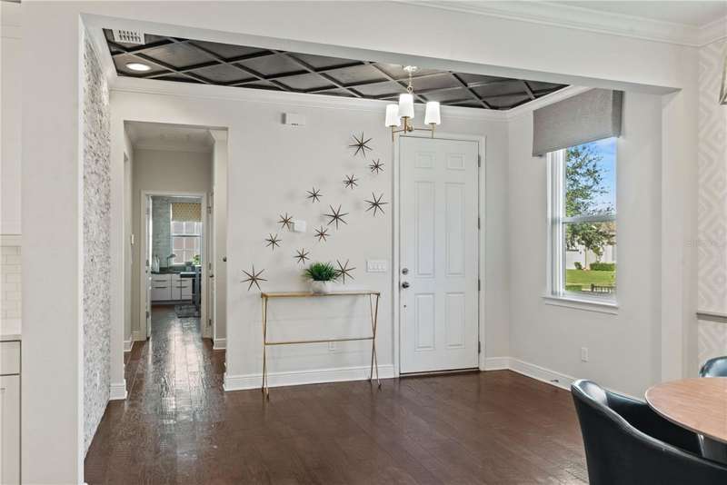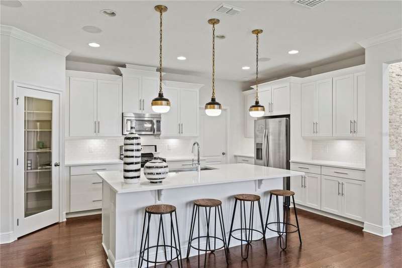 Move right into this former model home from Cal Atlantic Homes in Ocoee's gated Arden Park North community. This 'Largo floor plan features 3 beds, 2 baths, family room, dining room, upgraded kitchen, 2 car garage, a large covered patio that backs up to trees - NO REAR NEIGHBORS! You will love the 8' front door and stone front elevation, tall ceilings, neutral paint palate, crown molding, wood and ceramic tile floors throughout - no carpet - and the open floor plan! The foyer with coffered ceilings will welcome you into the home with the dining room in front of you. The spacious and upgraded kitchen features 42 cabinets with crown molding and hardware, subway tile backsplash, quartz counters with a farmhouse style stainless steel sink, stainless steel appliances with a gas range, breakfast bar, plenty of counter space and a walk-in pantry with a glass French door. The kitchen is open to the large family room, with a French door leading to the brick paver and covered patio that is pre-plumbed for a summer kitchen and backs up to a wooded view for privacy - what a great space to enjoy your morning coffee or relax after a long day! The owner's suite is in the back of the home, overlooks the wooded backyard and features a tray ceiling with crown molding and wood panels, and an en-suite bath with a double sink 'adult height vanity with two vessel sinks, a glass enclosed, walk in tiled shower with a bench, a walk-in closet with built-ins and a separate water closet. The guest bedrooms are in the front of the home for privacy. One has a built-in desk and wall-unit built into the wall. The guest bathroom has a one sink 'adult height vanity and a tiled tub/shower combo with a large decorative listello design on the wall. The laundry room is off the kitchen and has 42 cabinets for storage, a new washer and built in sink with cabinet underneath. The two car garage floor is epoxied. Additional updates to this home include a water filtration system, a transferrable termite bond, surround sound throughout the home and a built-in security system with cameras and a monitor. Home can be sold with the existing furniture and d�©cor, if the Buyer chooses. Community is gated and features a pool, playground, fitness center and a walking trail around Lake Sims. Centrally located, minutes away from the West Orange Trail, easy access to the 429, downtown Winter Garden, shopping, dining and major highways. Make this beautiful home yours today!