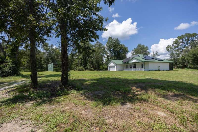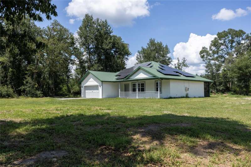 Under contract-accepting backup offers. Bring your horses and enjoy country living at its finest! This beautiful and secluded 10-acre property in Fort White is mostly wooded yet thoughtfully cleared in key areas, offering the perfect blend of privacy and functionality. Already set up for horses, the property includes two paddocks, a 24' x 36' pole barn, horse pens, shelters, and a huge metal carport ideal for storing your horse trailer, truck, or farm equipment. The home has been freshly painted inside and out, giving it a bright and welcoming feel. Energy efficiency takes center stage with a 10.23 kW solar system featuring solar panels, a new 80-gallon high-efficiency water heater equipped with a heat pump, and a newer washer and dryer included. Utility bills stay remarkably low, making this home both modern and budget-friendly.Inside, you’ll find an open floor plan with brand-new carpet in the living room and primary bedroom, granite countertops, abundant soft-close cabinetry, and recessed lighting throughout. A new dishwasher adds even more convenience. The spacious master suite boasts a walk-in closet and a luxury bath with a jetted tub, dual-head walk-in shower with bench seating, creating your own private retreat. Enjoy evenings on the front porch watching wildlife, or retreat to the screened back porch overlooking a freshly cleared section perfect for a flower or vegetable garden. All of this is just minutes away from the famous Ichetucknee Springs and Santa Fe River, where you can enjoy Florida’s natural beauty. With modern updates, energy savings, and fully equipped horse facilities, this property is truly move-in ready and waiting for you.