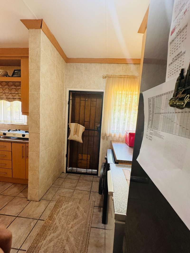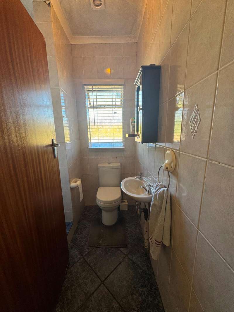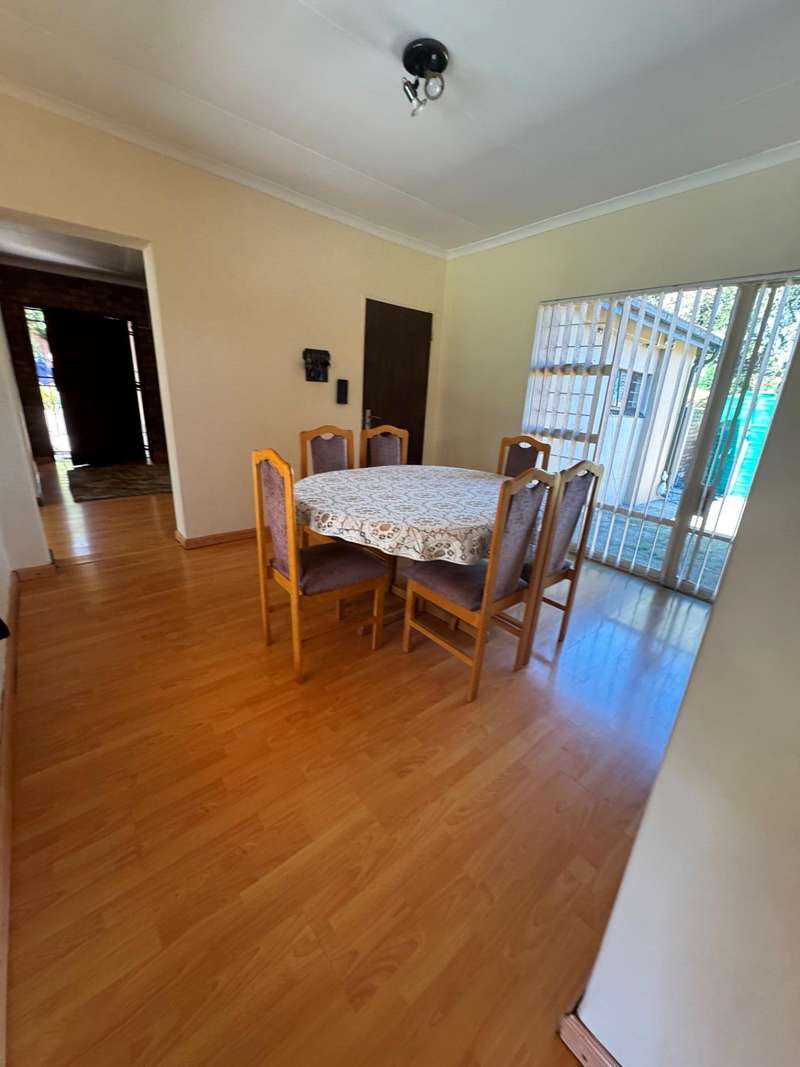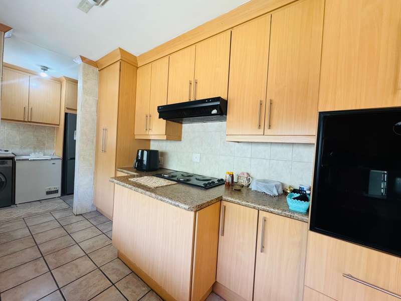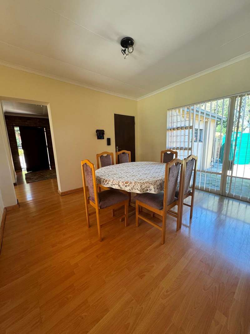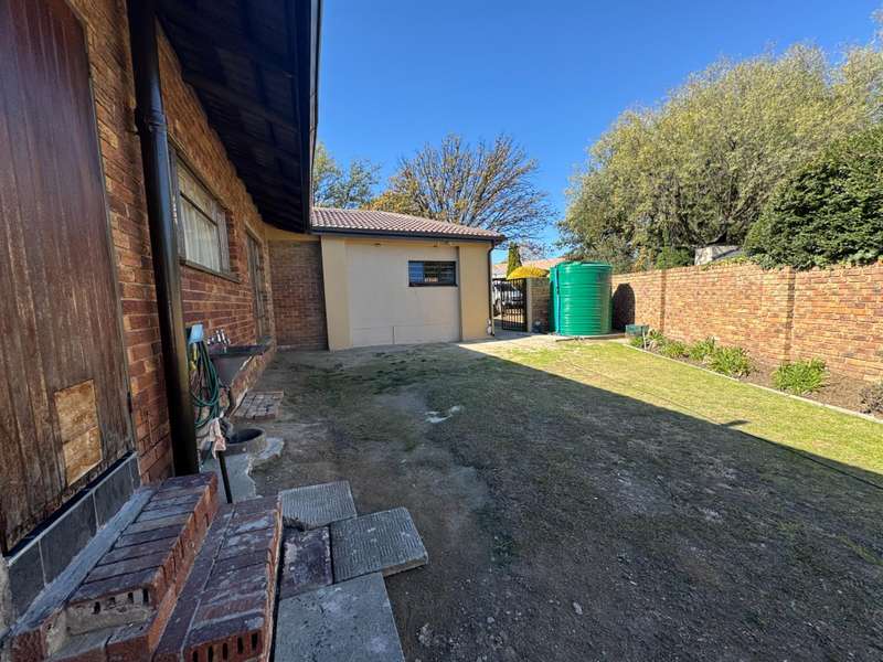 Spacious newly renovated 4-Bedroom Home in Prime Location Perfect for Family Living! This well-located home offers a perfect blend of comfort, convenience, and security. Situated close to the main road, town, and schools, this property is ideal for families looking for accessibility and space. As you step into the home, you are welcomed by a beautiful entrance. To your right, the first lounge invites you in, creating a warm and inviting atmosphere. Moving forward, you enter the dining area, which seamlessly connects to the second lounge on your right and the well-equipped kitchen ahead. The kitchen features built-in cupboards and an electric stove, providing ample storage and functionality. Down the passage, you will find a dedicated study perfect for a home office or quiet reading space. Further along, the three well-sized bedrooms all come with built-in cupboards. The two separate bathrooms cater to different needs: the first features a bathtub, basin, and toilet, while the second includes a shower, toilet, and basin. The main bedroom, located at the end of the passage, offers a private retreat within the home. This property sits on a spacious yard, offering ample outdoor space. Additional features include: Garages for 5 cars: The first garage accommodates two cars side by side, while the second garage fits three cars facing forward. Outside storage and toilet for added convenience. Security features such as beams and a remote-controlled gate for peace of mind. A JoJo tank to ensure water availability. Paved yard in the front with a well-maintained grassy area at the back, providing the perfect balance of practicality and greenery. This home is a rare find in a prime location don?ÇÖt miss out on the opportunity to make it yours! Contact us today to arrange a viewing.