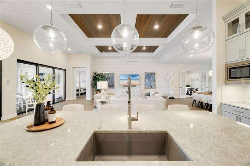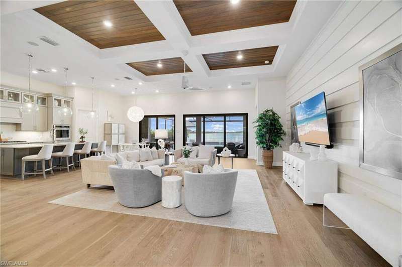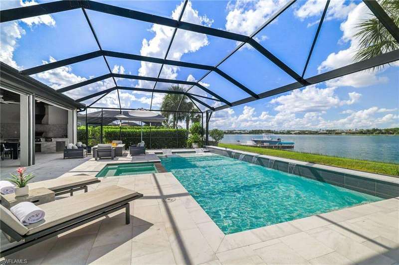 This stunning WildBlue Property with 3,890 sq. ft!! Home offers luxury living inside and out, 4 bedrooms, 4 bath, den/game room plus separate office, custom chef's kitchen featuring large island, double ovens, a built-in steamer, wine and beverage refrigerator and walk-in pantry. The open design flows seamlessly to spacious living area with hardwood floors, a dedicated office, oversized bedrooms and a bonus game room with wet bar. Outside, enjoy resort-style amenities including a sparkling saltwater pool and spa, full outdoor kitchen, and whole-home generator for peace of mind. The garage is fully finished with custom cabinets and epoxy flooring. Perfectly situated on a quiet cul-de-sac overlooking a large boating lake, this property is part of a private gated community with access to a member only-club, marinas, water skiing, boating, pickleball, tennis, fishing, private dinning and outside resort pool and bar, you can add your own private boat dock to this lot.