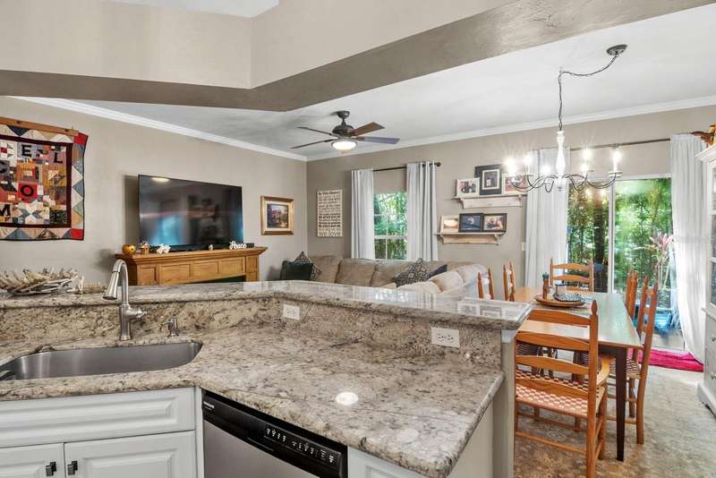 Discover comfort and convenience in this well-maintained 3-bedroom, 2.5-bath townhome located in the sought-after Monticello at Mill Pond community—just minutes from the University of Florida, Ben Hill Griffin Stadium, and UF Health. The kitchen features sleek granite countertops, modern stainless steel appliances, and classic white cabinetry. Throughout the home, you’ll find soft, neutral tones from a fresh repaint in 2024, updated lighting, and detailed crown molding. This home also features a 2025 installed roof, a 2023 AC unit, a 2024 hot water heater, and a 2023 primary bathroom shower upgrade. Each bedroom is generously sized, filled with natural light, and offers plenty of room to relax or work from home. Enjoy the attached 1-car garage with extra storage, a dedicated driveway space, and ample guest parking. The rear patio opens to a quiet green space—ideal for unwinding or entertaining. Residents have access to a well-kept community pool and are just moments away from shopping, dining, and recreational options. This is a standout opportunity in one of Gainesville’s most accessible neighborhoods.