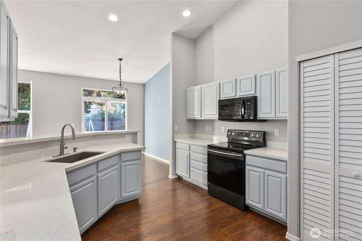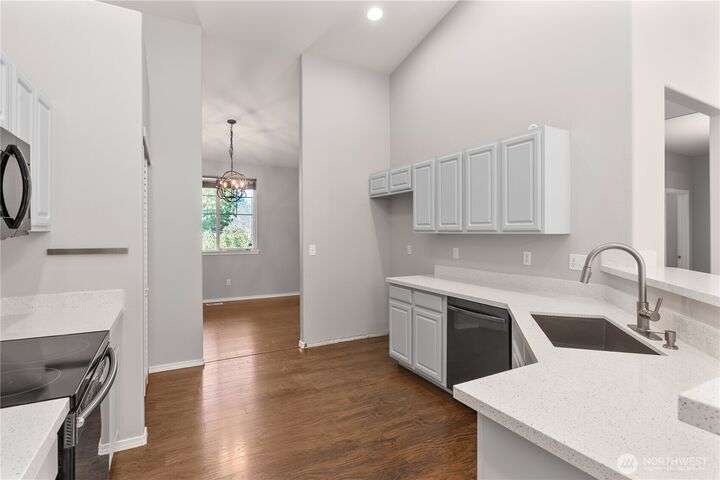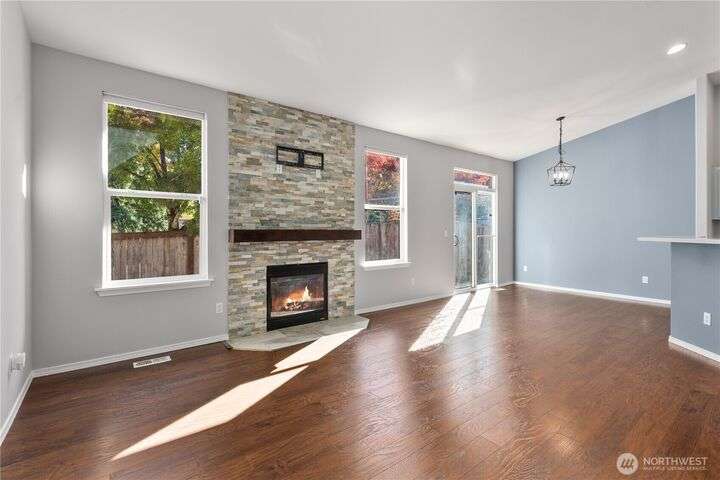 Experience the ease of turn-key living in this beautifully renovated, spacious home nestled on a peaceful loop in the Lacey community. This 2,079 sq ft residence features an extensive list of upgrades all new flooring, and fresh interior and exterior paint. The heart of the home shines with an all-new kitchen complete with modern appliances. Enjoy updated countertops on bath vanities, a cozy main floor fireplace, and a desirable walk-in closet. The property includes an attached garage and patio within a partially fenced yard. Strategically located with close proximity to the freeway, shopping, restaurants, and JBLM, this home perfectly blends convenience with quiet community living.