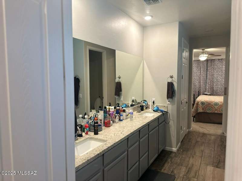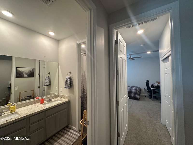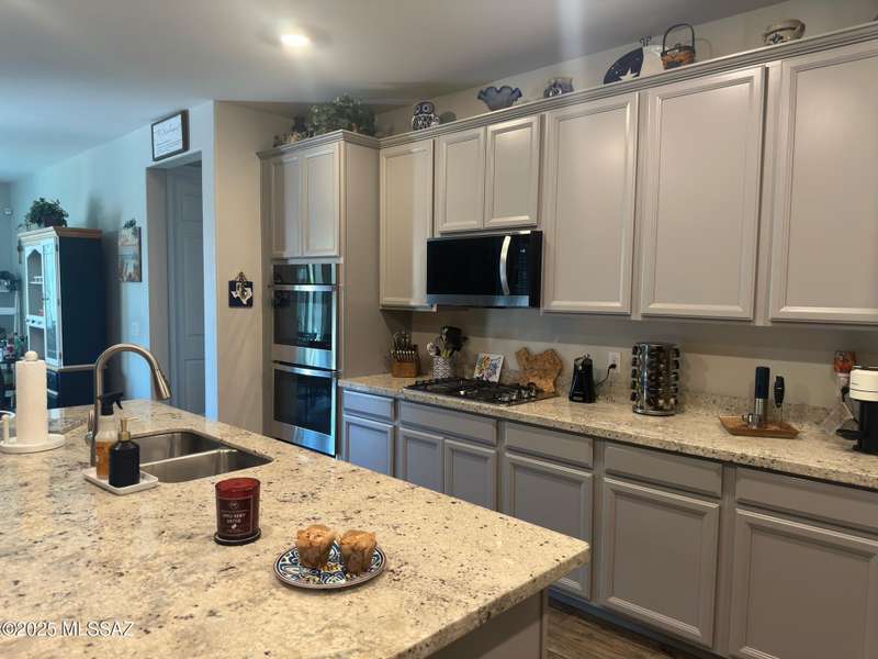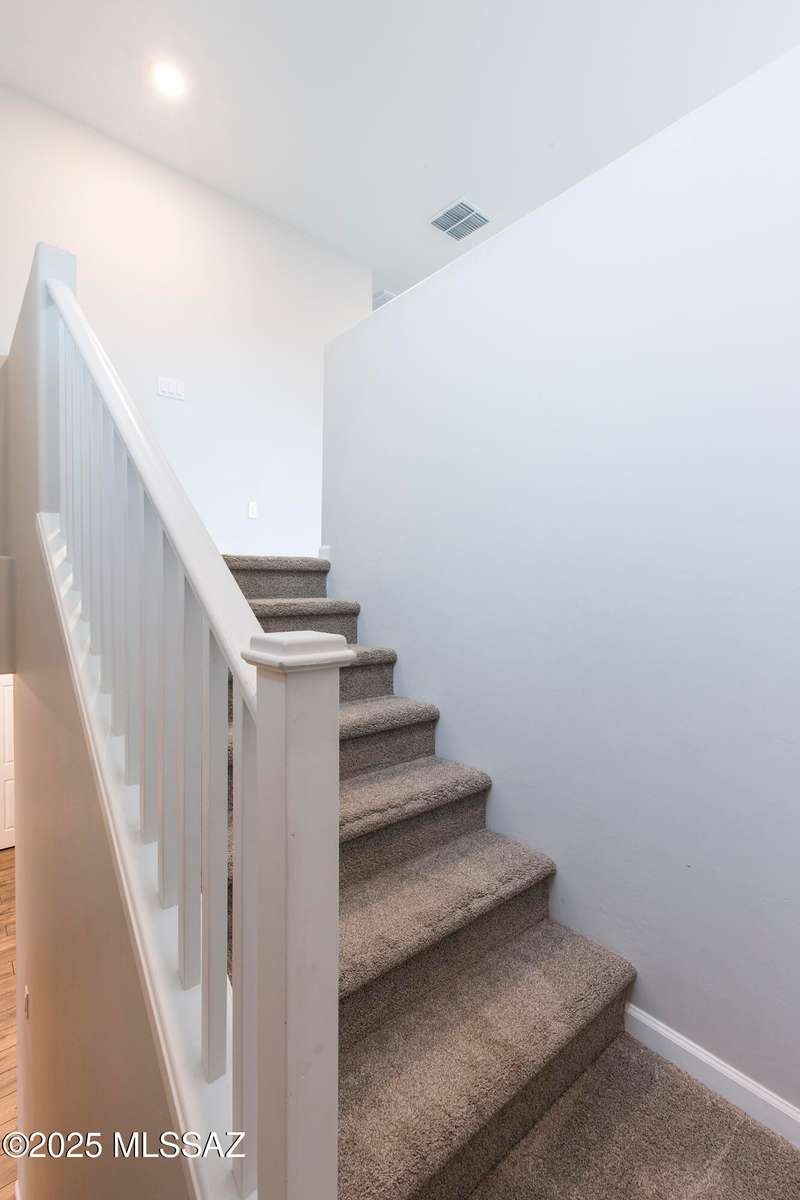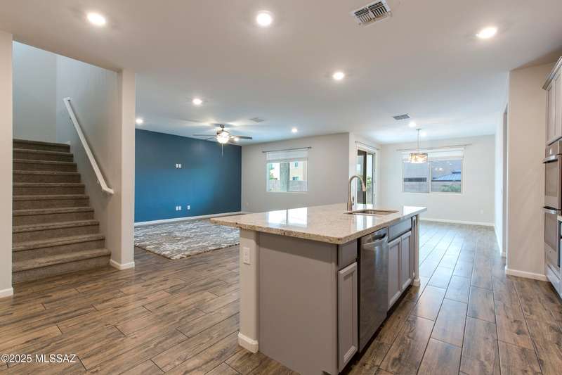Sought after Sabino FP- 4/3 w/the best upgrades:Premium lot with open mountain views/open space and direct access to Loop for Biking, Walking or just enjoying the view! Gourmet kitchen w/double ovens, gas cook top, stunning cabinets&counter-tops that continue throughout the home. Main bd on lower level has envious bath w/huge shower, dual vanities and walk in closet. Split FP has 3 beds/2 baths downstairs and upstairs a full 1bd/1ba with loft-perfect for in-laws, guests, college student or private office area. Beautiful backyard is done tastefully with covered patio, pavers/turf-amazing for entertaining you or furry friends. Plus solar panels 4 savings & then complete it all w/tandem 3 car garage w/ storage plus ample parking. Everything is done, move in and enjoy your new home now!