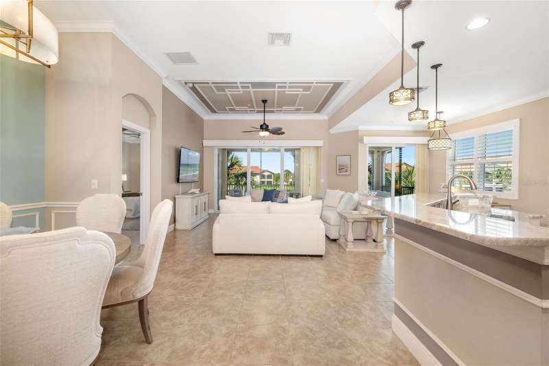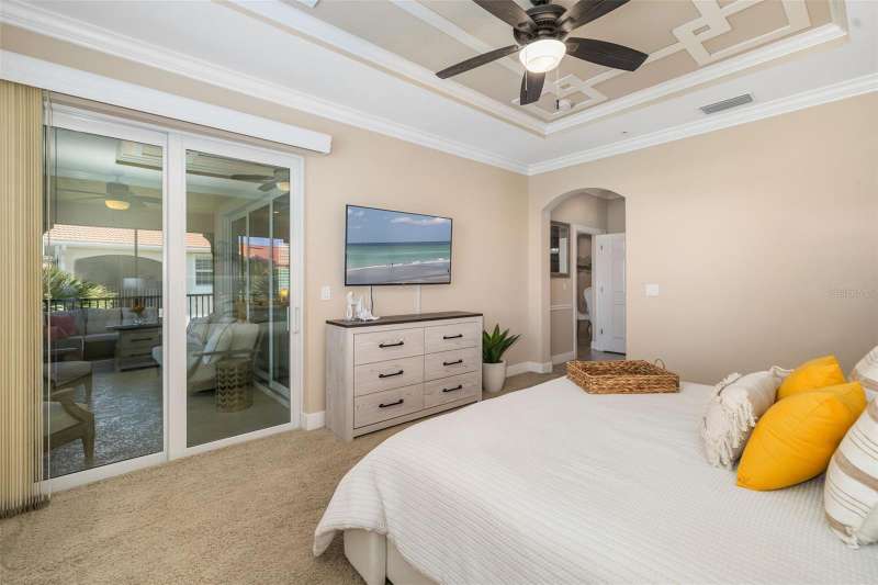 NEW PRICE! Sellers want to negotiate, BRING BEST OFFER AND TERMS! This outstanding carriage condo has over 2,400 square feet of living space and is a true lock-and-go. Access your lovely second-floor unit using your private elevator or beautiful wooden staircase. This property is equipped with natural gas and offers 3 spacious bedrooms, two full baths, a flex space that can be an office or den, laundry room with cabinets and an open floor plan connecting the beautifully updated kitchen, dining, and living room allowing optimum flow and comfort. There is also an option to buy turnkey furnished, making this transition smoother and instant! The expansive west-facing screened balcony/lanai will allow you to enjoy magnificent sunsets and peaceful mornings overlooking your pond and water fountain. Located in the coveted Venetian Golf & River Club, this home is nestled within a community renowned for its outstanding amenities: 70-acre nature preserve that backs to the Myakka River, two inviting pools – a lap pool and resort style pool - on-site dining for lunches and dinners and poolside service that makes every day feel like a resort vacation. For those who love social activities, the club hosts a never-ending calendar of events, ensuring there’s always something exciting to do. Sports enthusiasts will delight in the eight Tru-Har tennis courts with both competitive leagues and beginner classes, as well as pickleball courts for every skill level. There is also optional golf membership for the prestigious 18-hole championship Chip Powell course owned by Heritage Golf. This gated community, which is golf-cart friendly, is a fit for every lifestyle from working families, retirees, and second home lovers. It also features comprehensive safety and security measures, including 24-hour security at the gate and 24-hour patrol. Additionally, this property is in the preferred FEMA X zone and Evacuation D area. You’ll have access to the best healthcare anywhere in the world with state-of-the-art facilities. And you will be conveniently located near shopping, dining, historic downtown Venice, and pristine beaches - Nokomis Beach is just 6.5 miles away. This property and community offer it all so act now to make this remarkable residence yours today!
