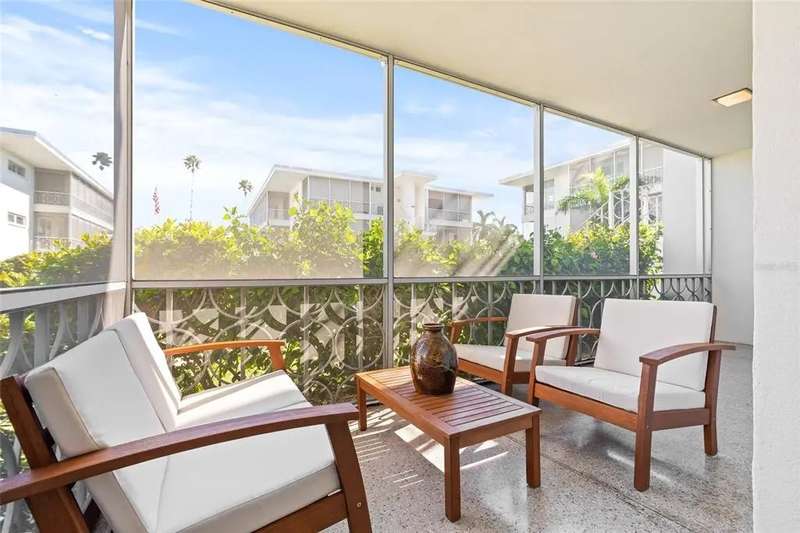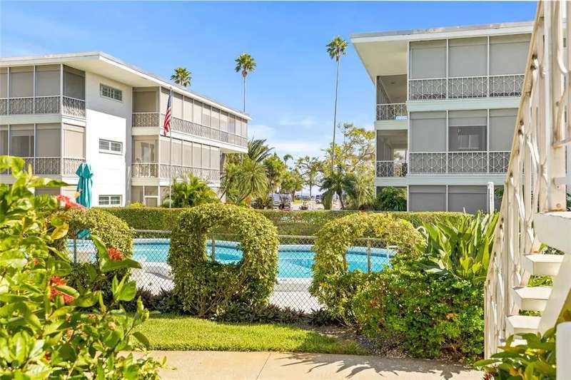 Discover the best of Old Northeast living in this thoughtfully updated 1-bedroom, 1-bath condo within the desirable Whispering Waters 55+ community. Perfectly situated across from North Shore Park, this residence enjoys a serene setting surrounded by beautifully landscaped grounds and just 66 residences across eight low-rise buildings. Inside, the 850 sq. ft. home has been tastefully enhanced with high-quality upgrades throughout — including real tongue-and-groove vintage hardwood floors, fresh interior paint, removed popcorn ceilings, and new dual-glazed slider doors that fill the space with abundant natural light. The reoriented kitchen features new cabinetry, updated plumbing, and brand-new appliances, designed for both style and functionality. Comfort and efficiency come with a new 17-SEER HVAC system and updated electrical, while the refreshed bathroom offers modern fixtures and finishes. A spacious 360 sq. ft. wraparound screened porch extends the living area and provides the perfect spot to enjoy morning coffee or evening breezes. Additional features include hurricane shutters and a private garage for secure parking and extra storage. Residents of Whispering Waters enjoy a host of community amenities, including a sparkling pool, shuffleboard courts, on-site laundry, and elevators. Monthly maintenance fees cover all utilities, ensuring simple and cost-effective living. Embrace the vibrant Old Northeast lifestyle with **North Shore Park** directly across the street—offering waterfront walking paths, tennis courts, playgrounds, and beach access. Beach Drive’s dining, shopping, and cultural attractions are just a block away, with easy access to major highways and Tampa International Airport for added convenience. This is a rare opportunity to own a meticulously maintained condo in one of St. Petersburg’s most sought-after locations. Schedule your showing today!