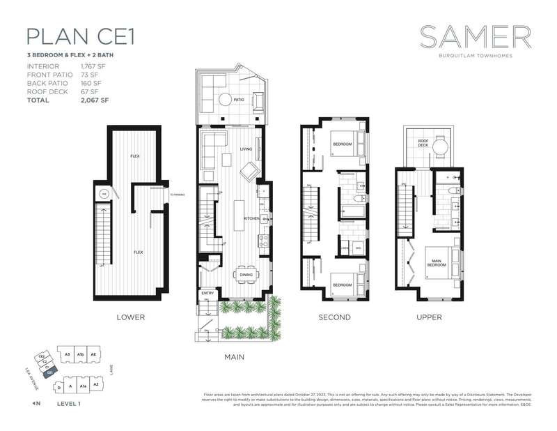 For a limited time, you can own at SAMER with just a 5% deposit! SAMER is the next community by Domus Homes; 23 modern craftsman three bedroom townhomes located in Burquitlam's friendliest neighbourhood. Homes include private yards or roof deck patios with views. A/C included in all homes, 9' ceilings on main, oversized windows, Samsung stainless appliance package and two beautiful colour schemes to choose from. Under construction at 728 Lea Avenue and estimated to complete by Spring 2025.