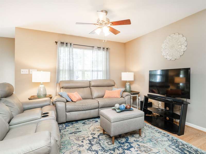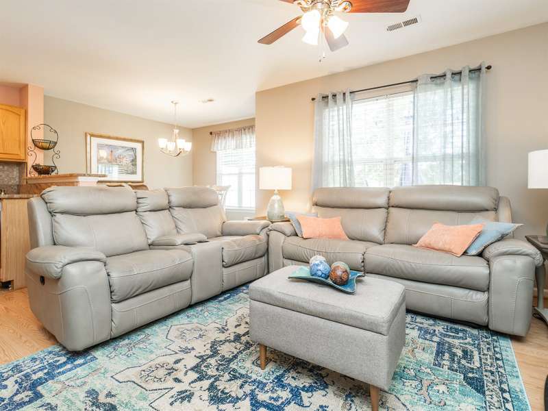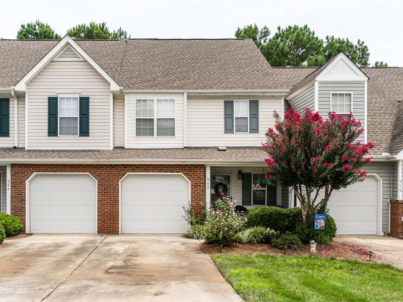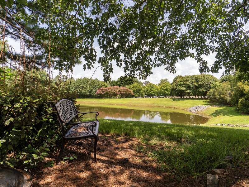 Charming home with a covered front porch and a back patio that overlooks a peaceful pond. Inside, you'll find an open floor plan with a spacious living room featuring a gas log fireplace. The kitchen offers granite countertops, a double oven stove, and all appliances remain including the washer & dryer. A half bath is located on the main level for guests. Both bedrooms have vaulted ceilings and attached full baths, providing comfort and privacy. This home is conveniently located near shopping and restaurants with easy access to I-85/40. Stoney Creek golf and pool are nearby but not included in the HOA. The pool is membership only & Stoney Creek Golf is semi private. HOA covers common areas, management services, general maintenance, trash removal, water, sewer & land scaping. Property is being sold subject to Court Order. Sale subject to 10-day upset bid period & subject to confirmation by the court.